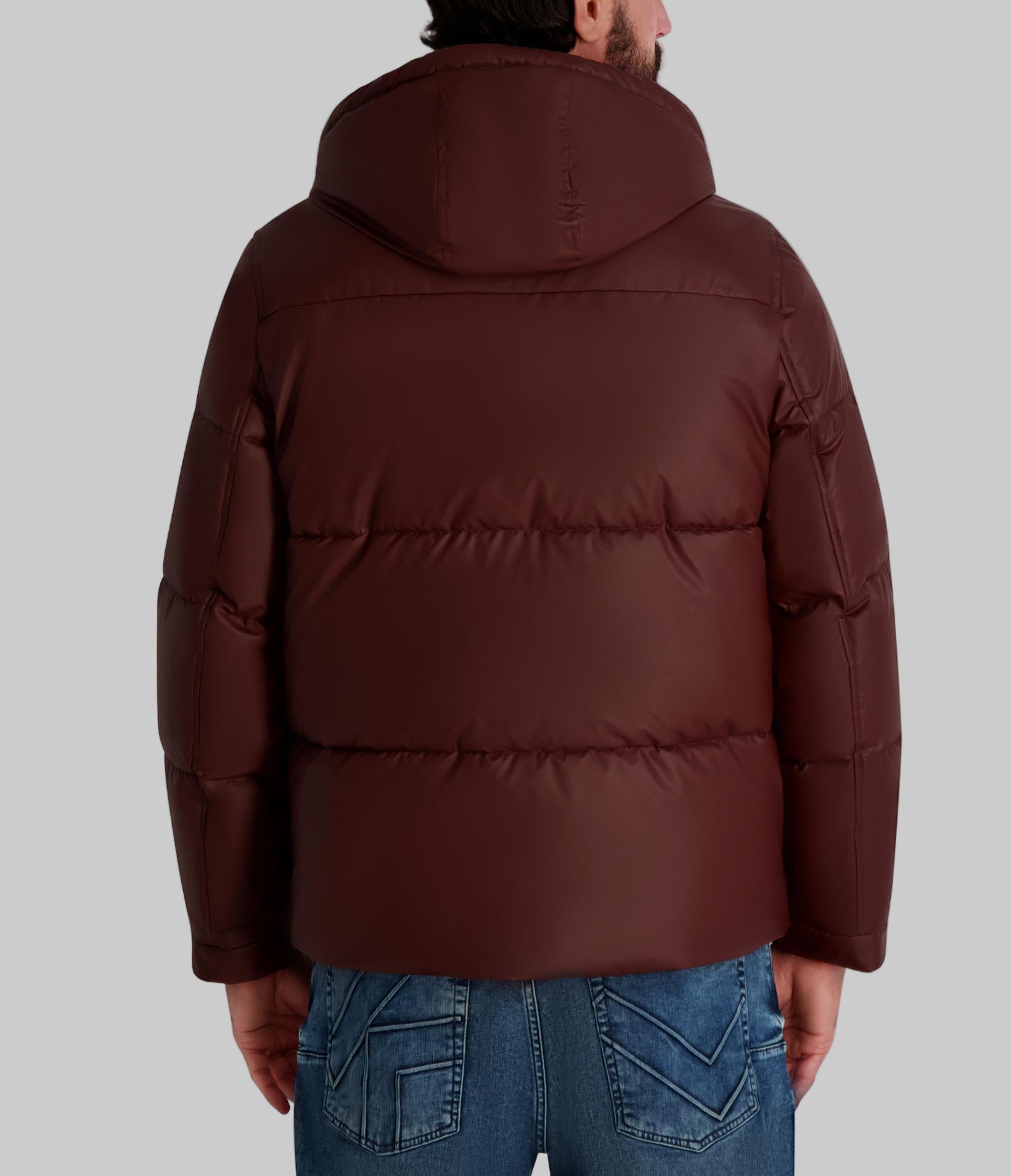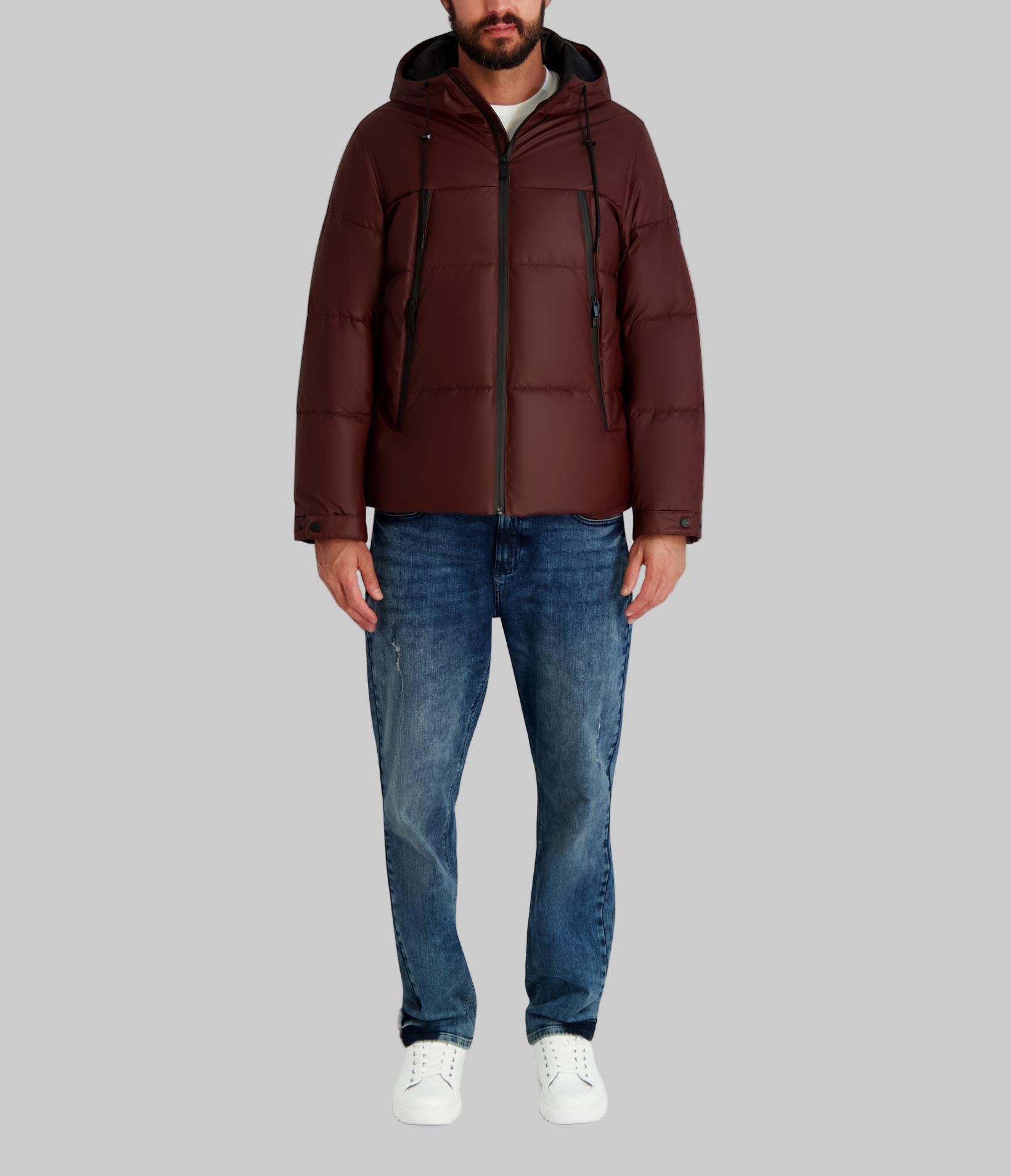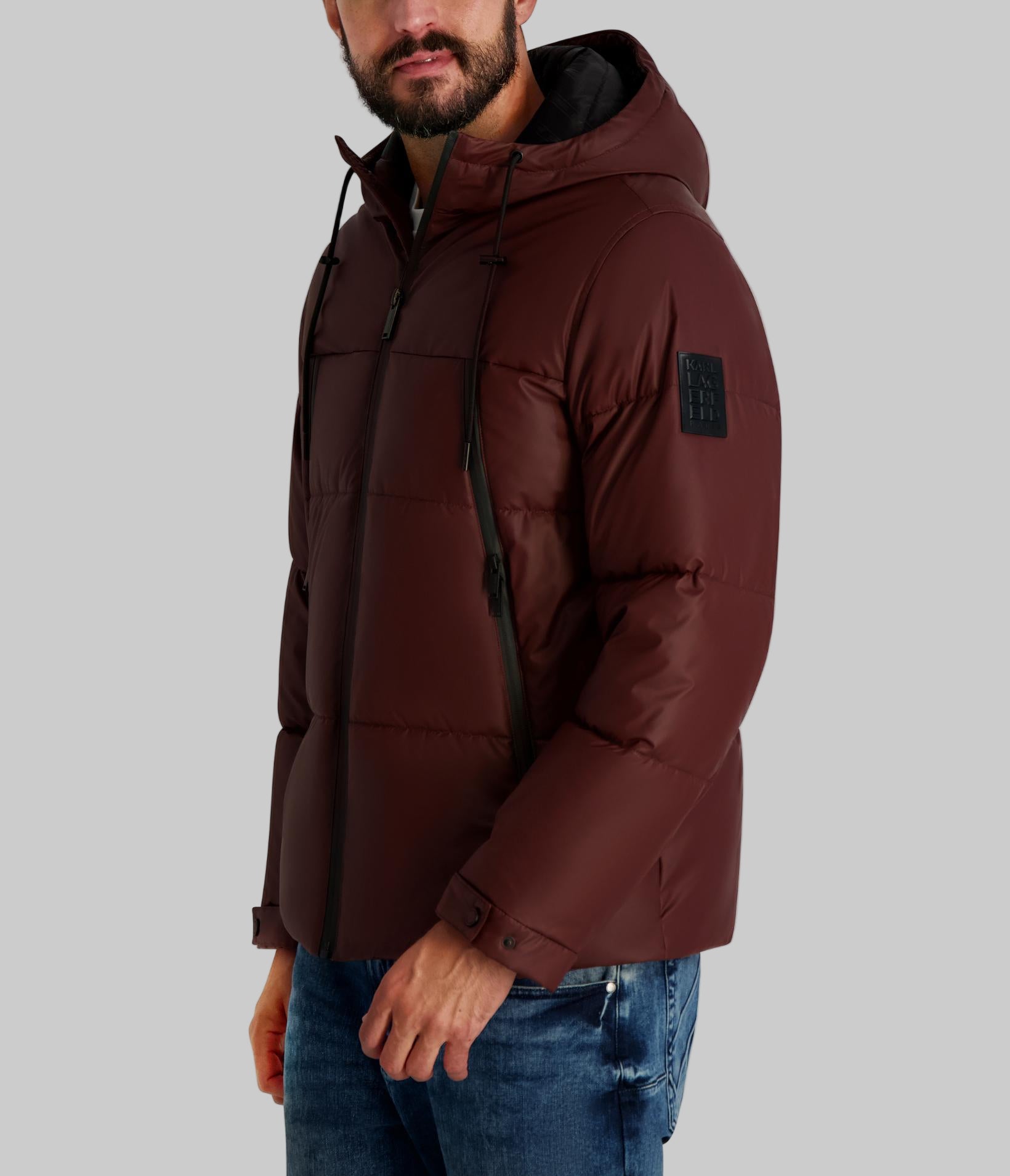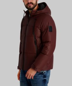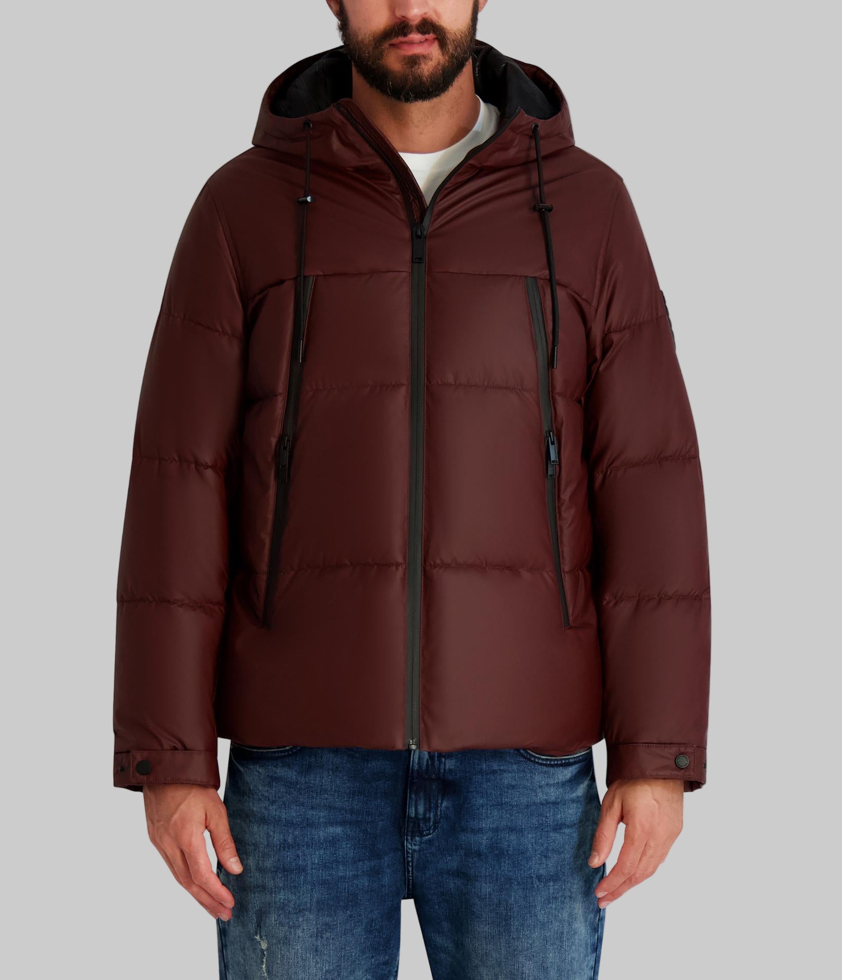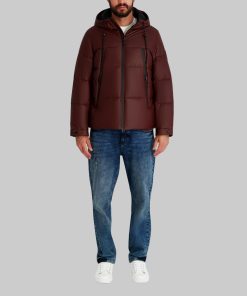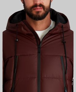 Karl Lagerfeld Men’s Mid Weight Hooded Puffer With Pockets | Wine