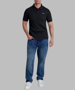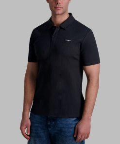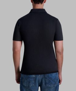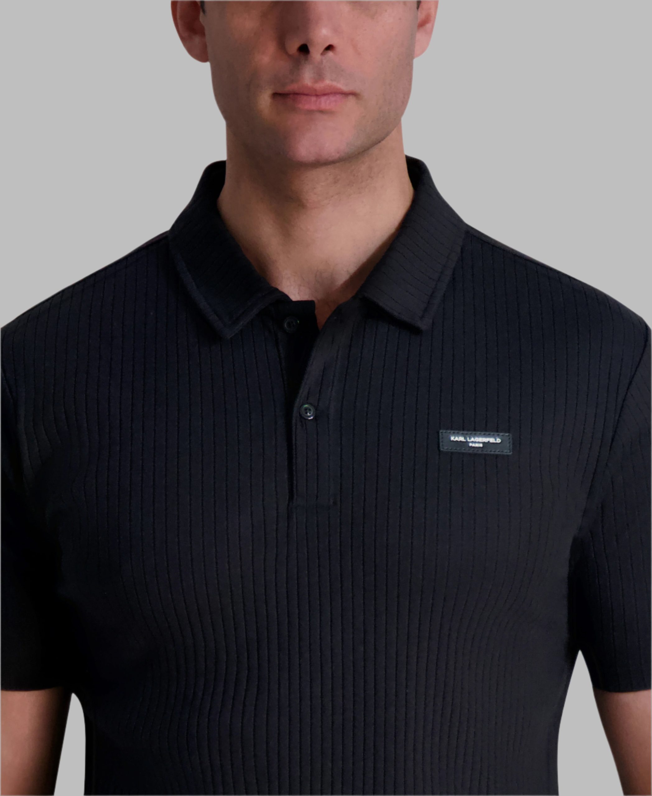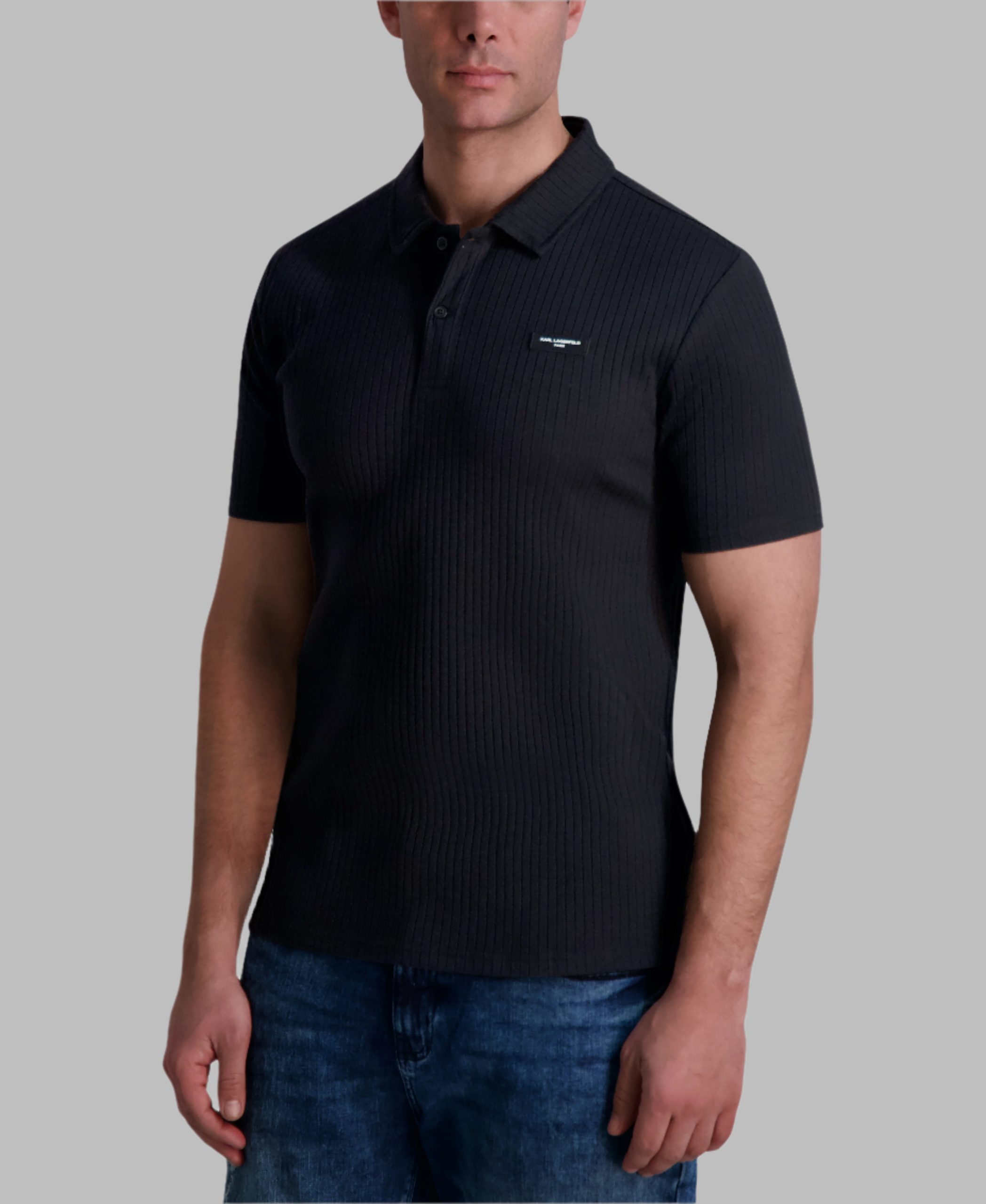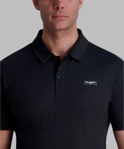 Karl Lagerfeld Men’s Ribbed Drop Needle Polo Shirt | Black