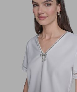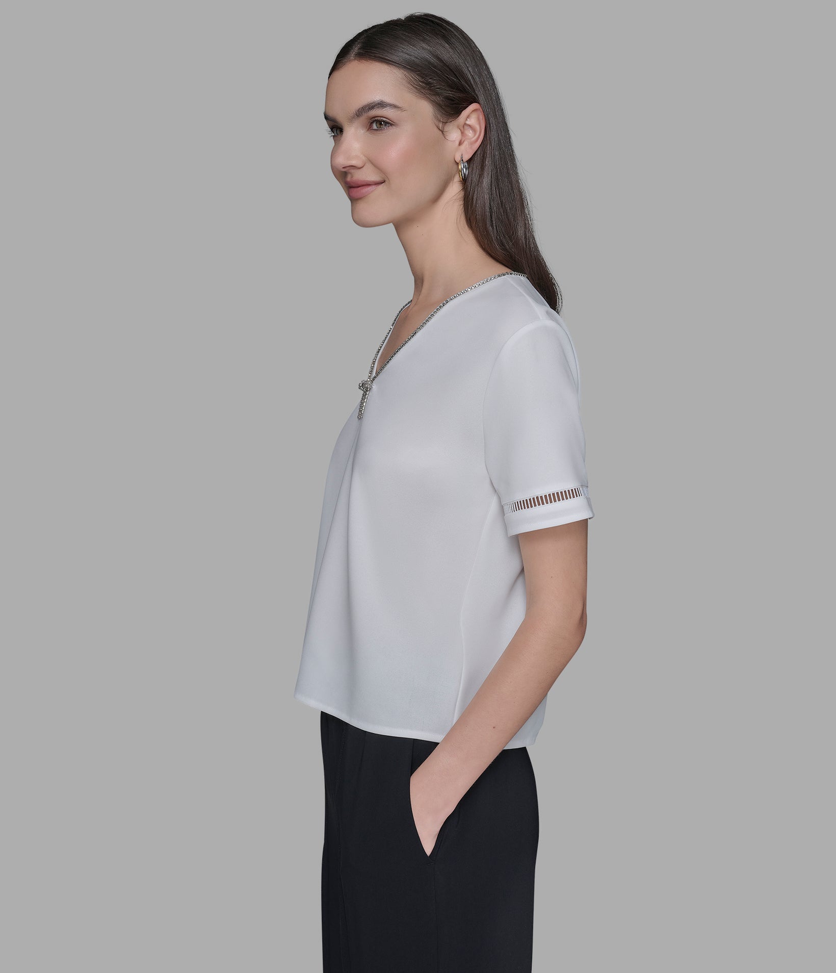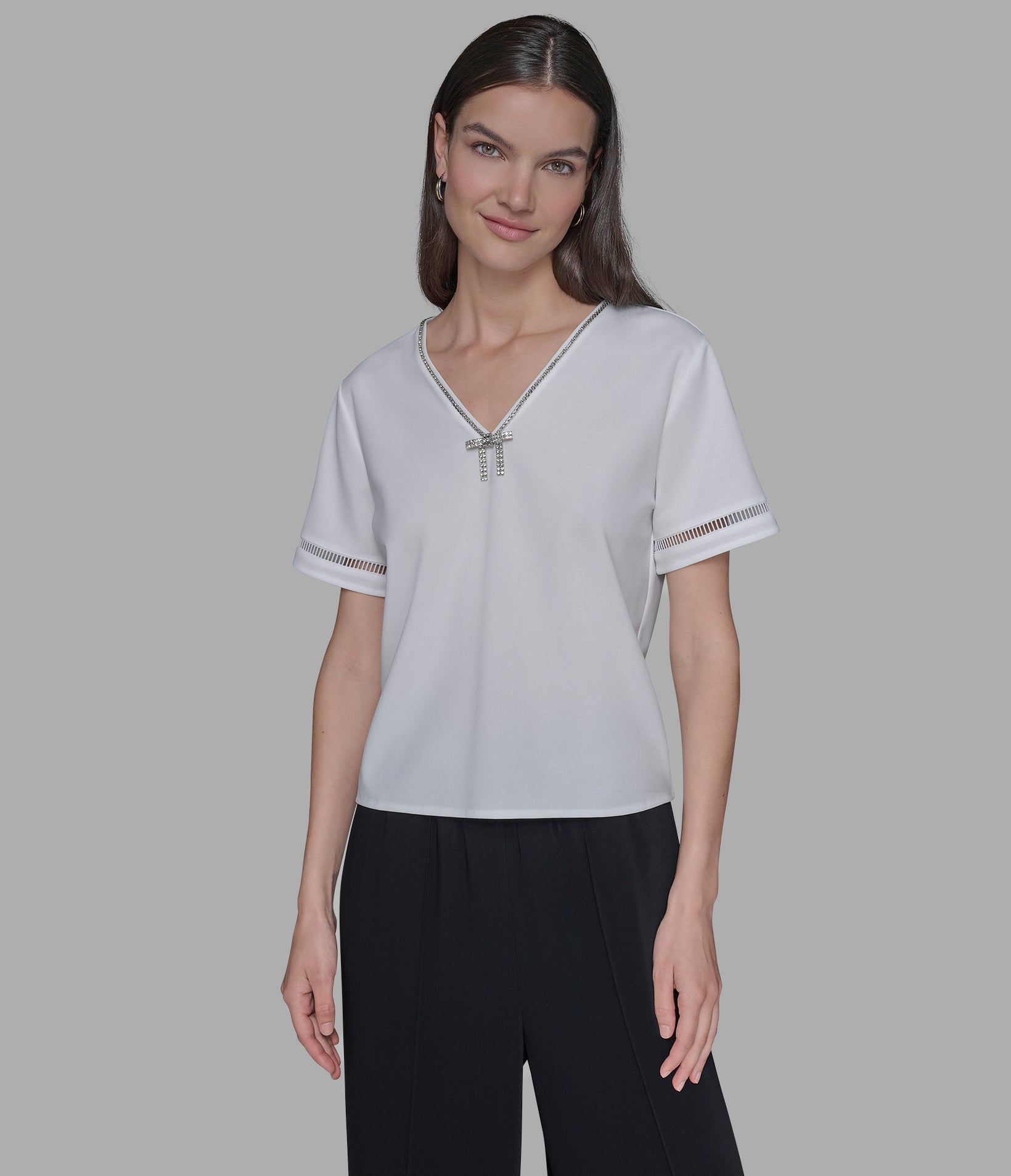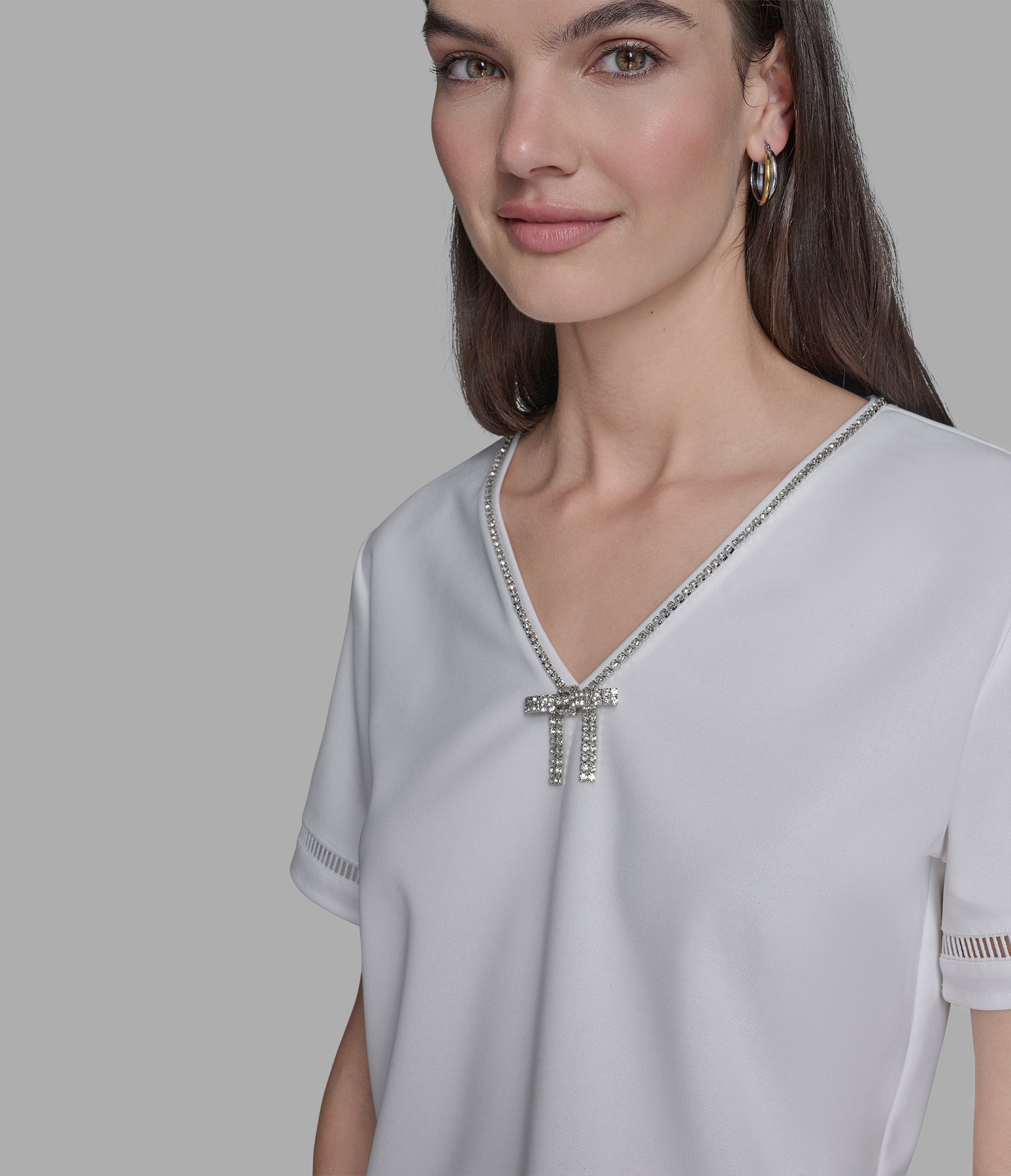 Pair this coquettish top with a new romantic baroque jean for opulence–off-duty style.