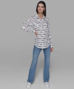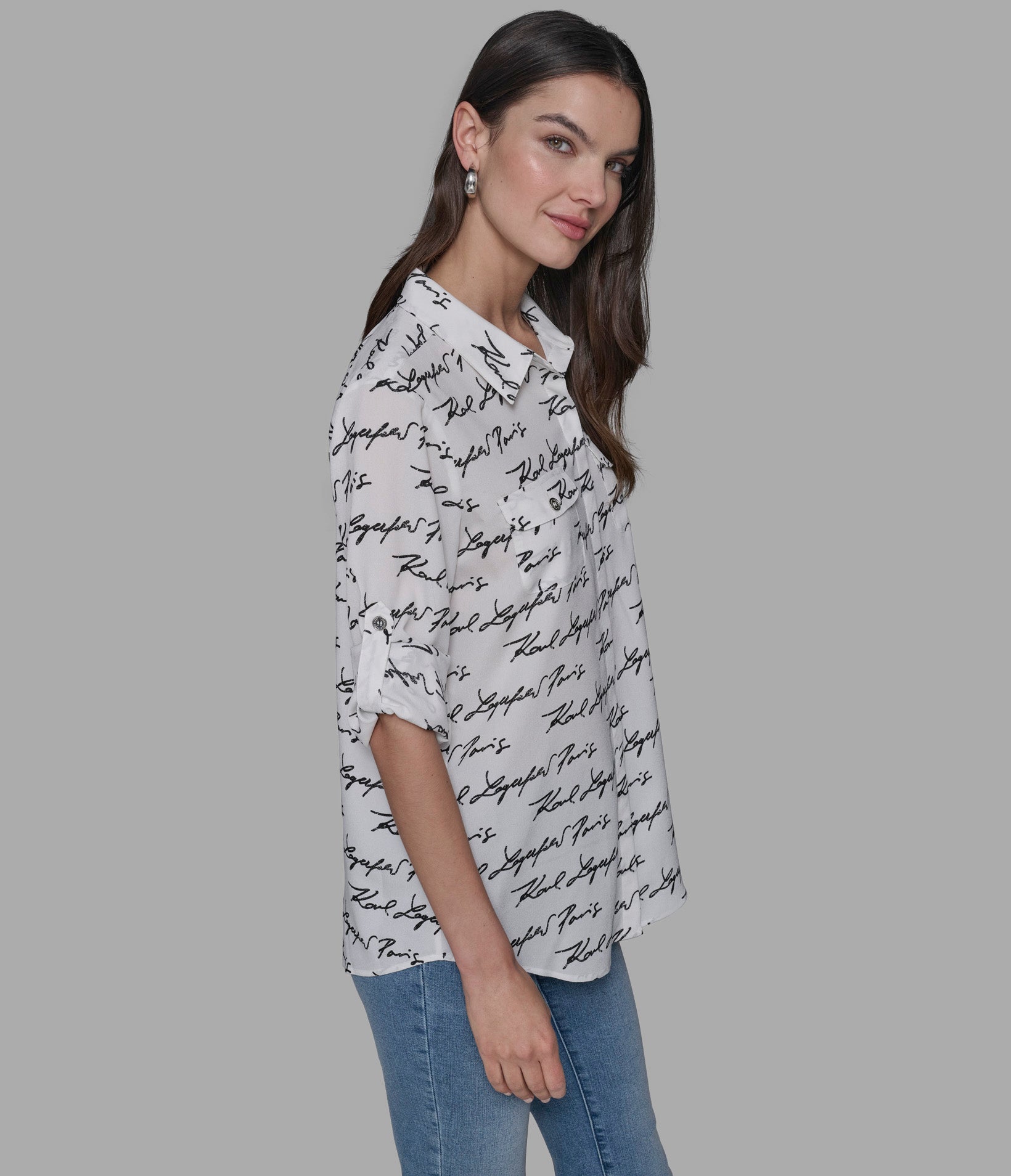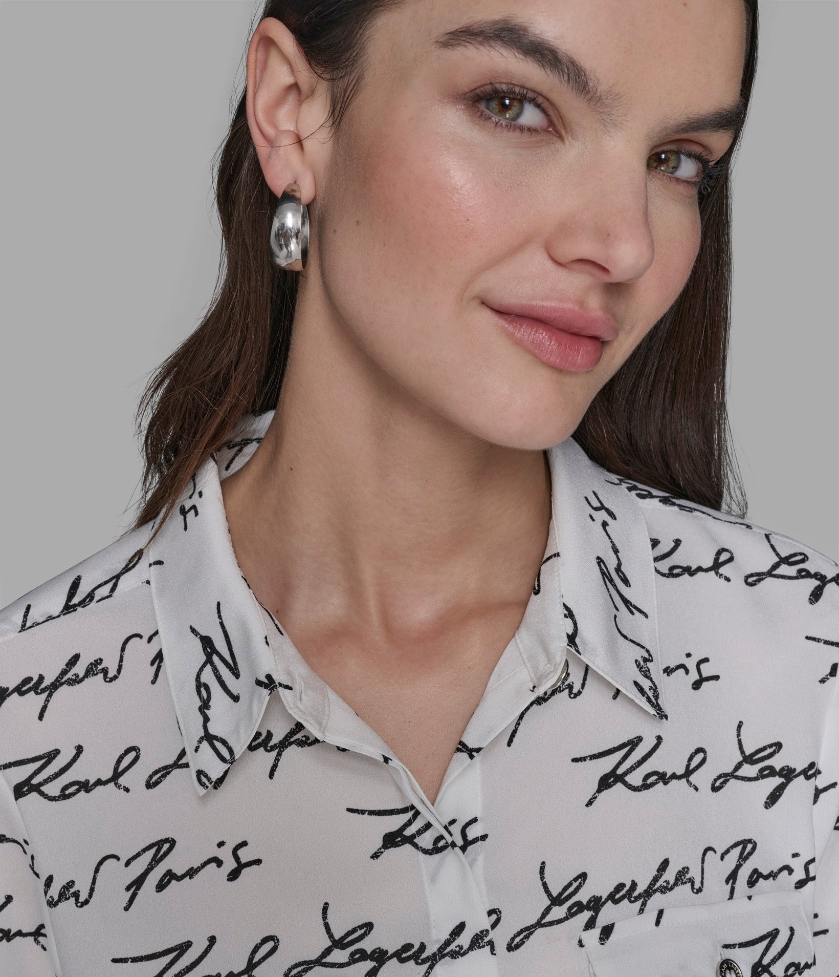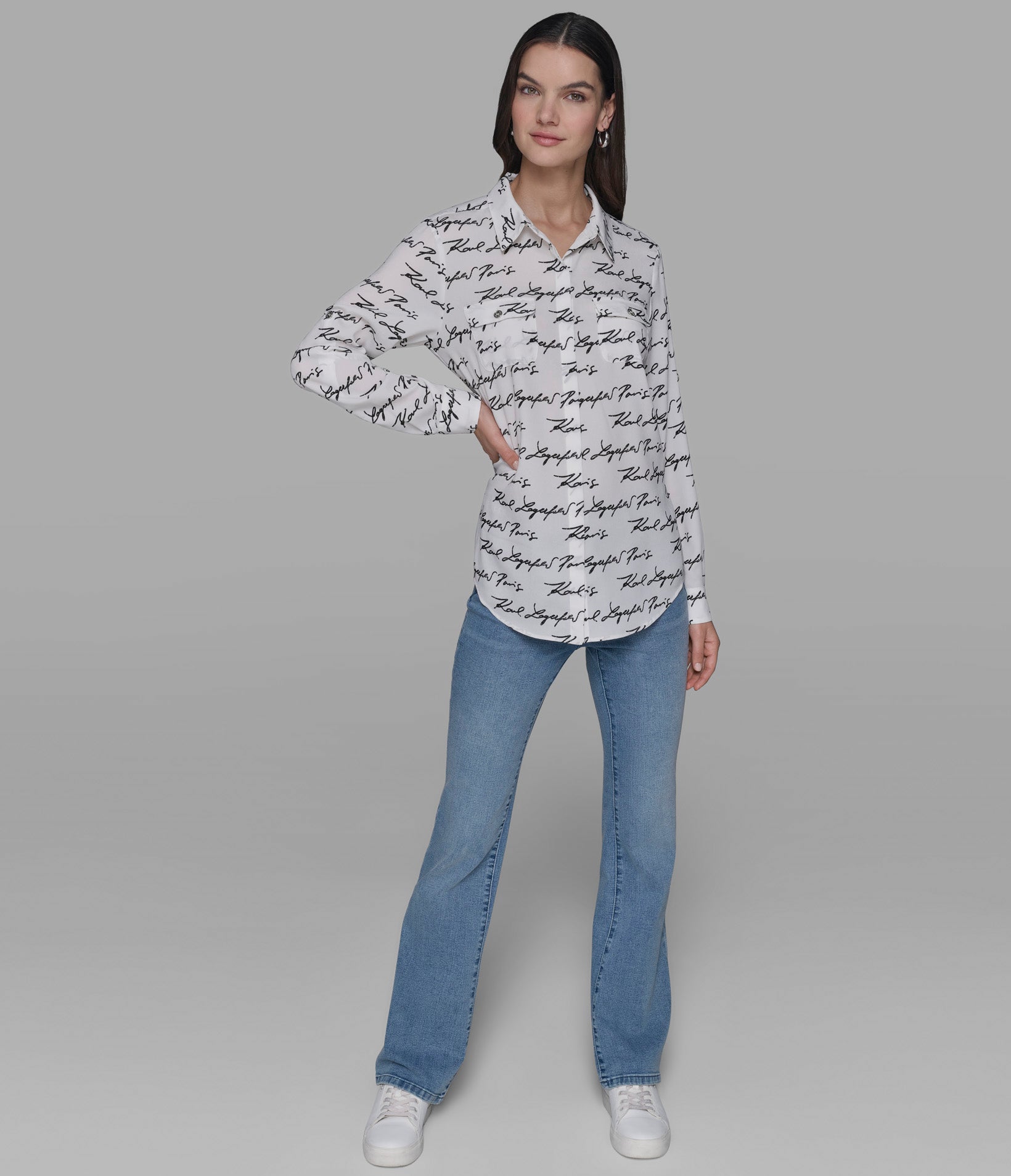 Karl and Choupette’s très cool vibe are written all over this blouse–channel it by wearing it to a gallery opening.