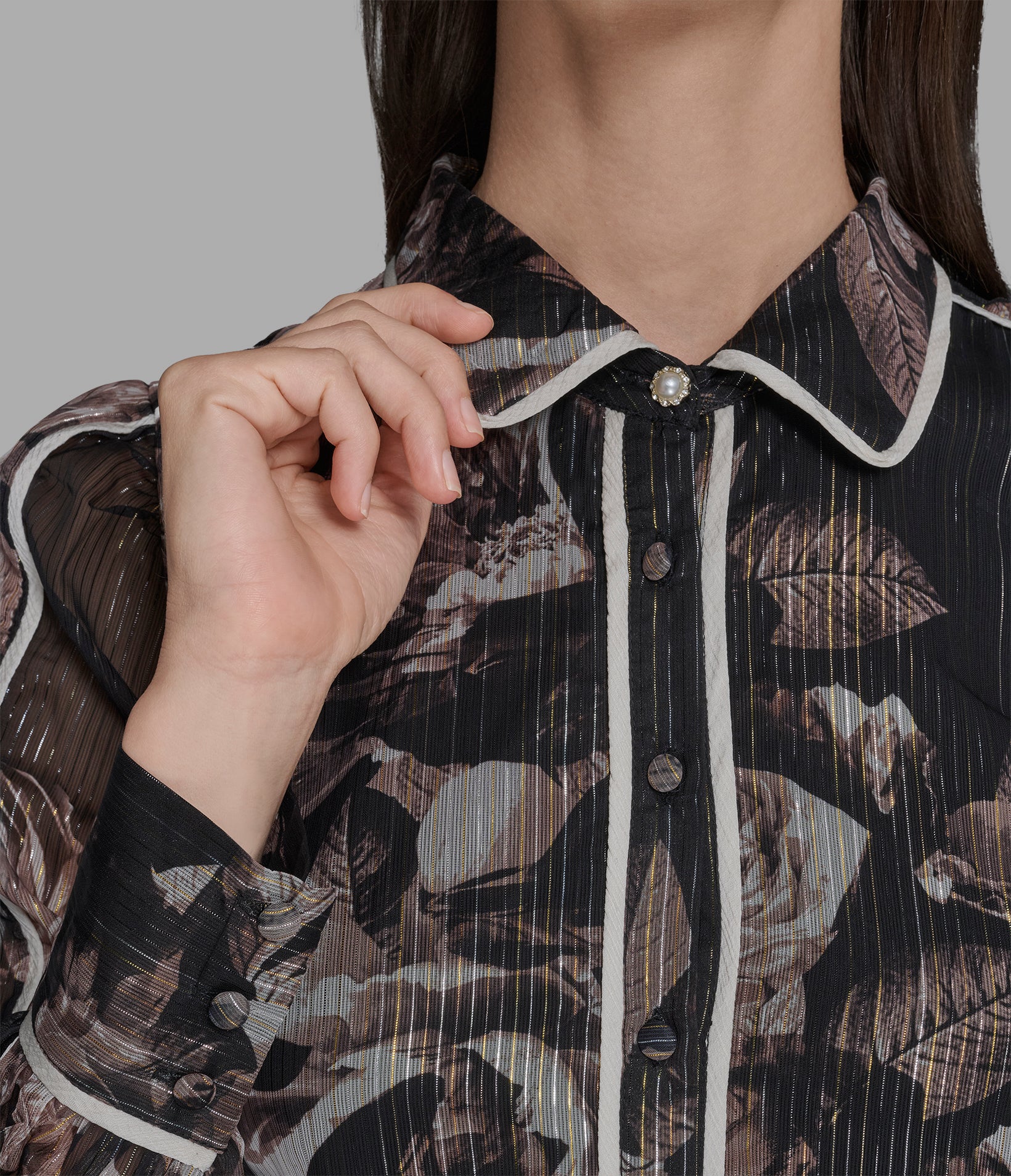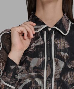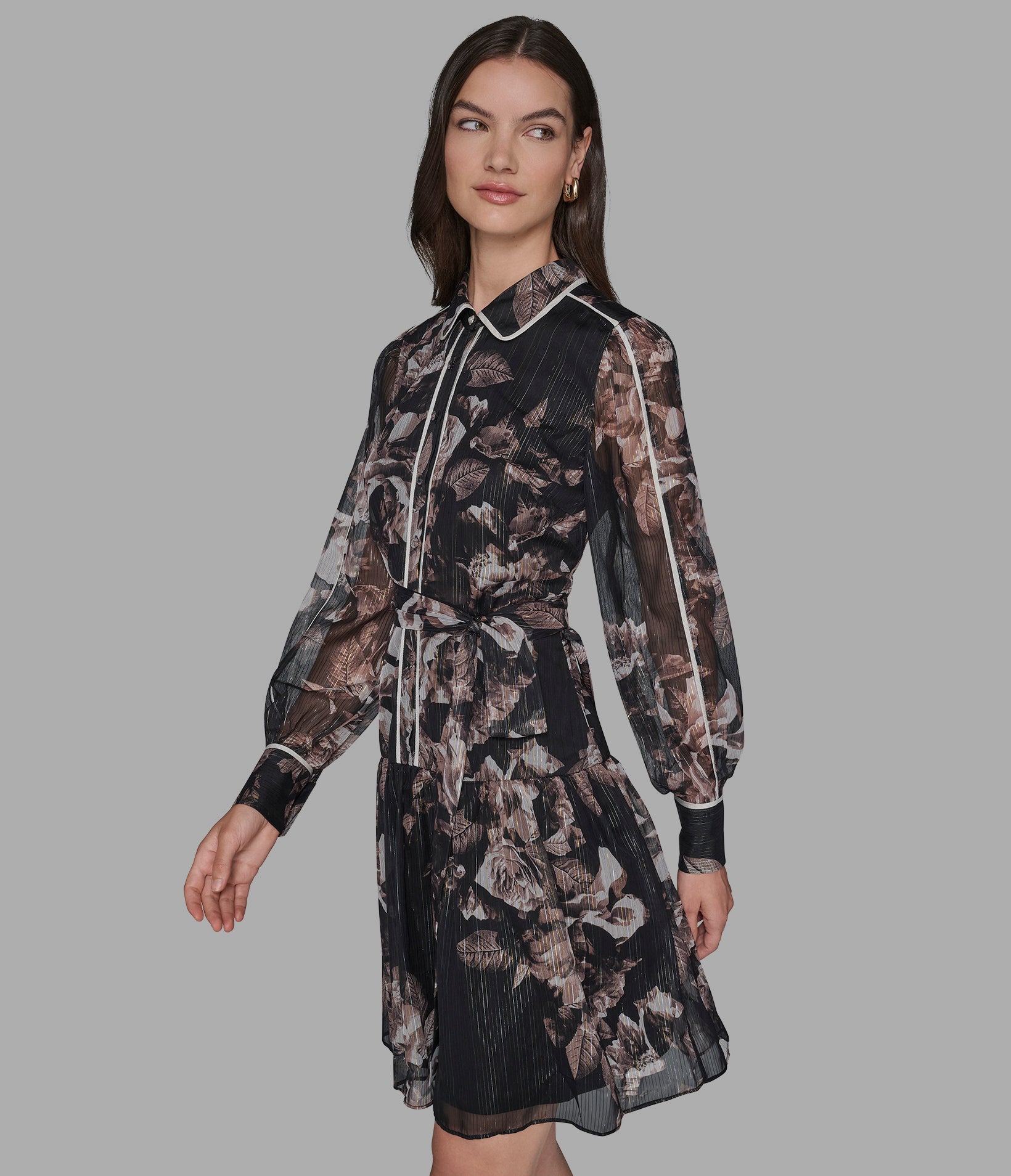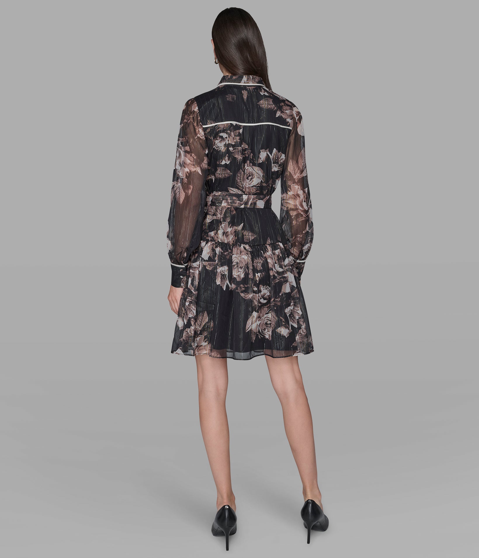 Karl Lagerfeld Women’s Floral Metallic Shirt Dress | Black