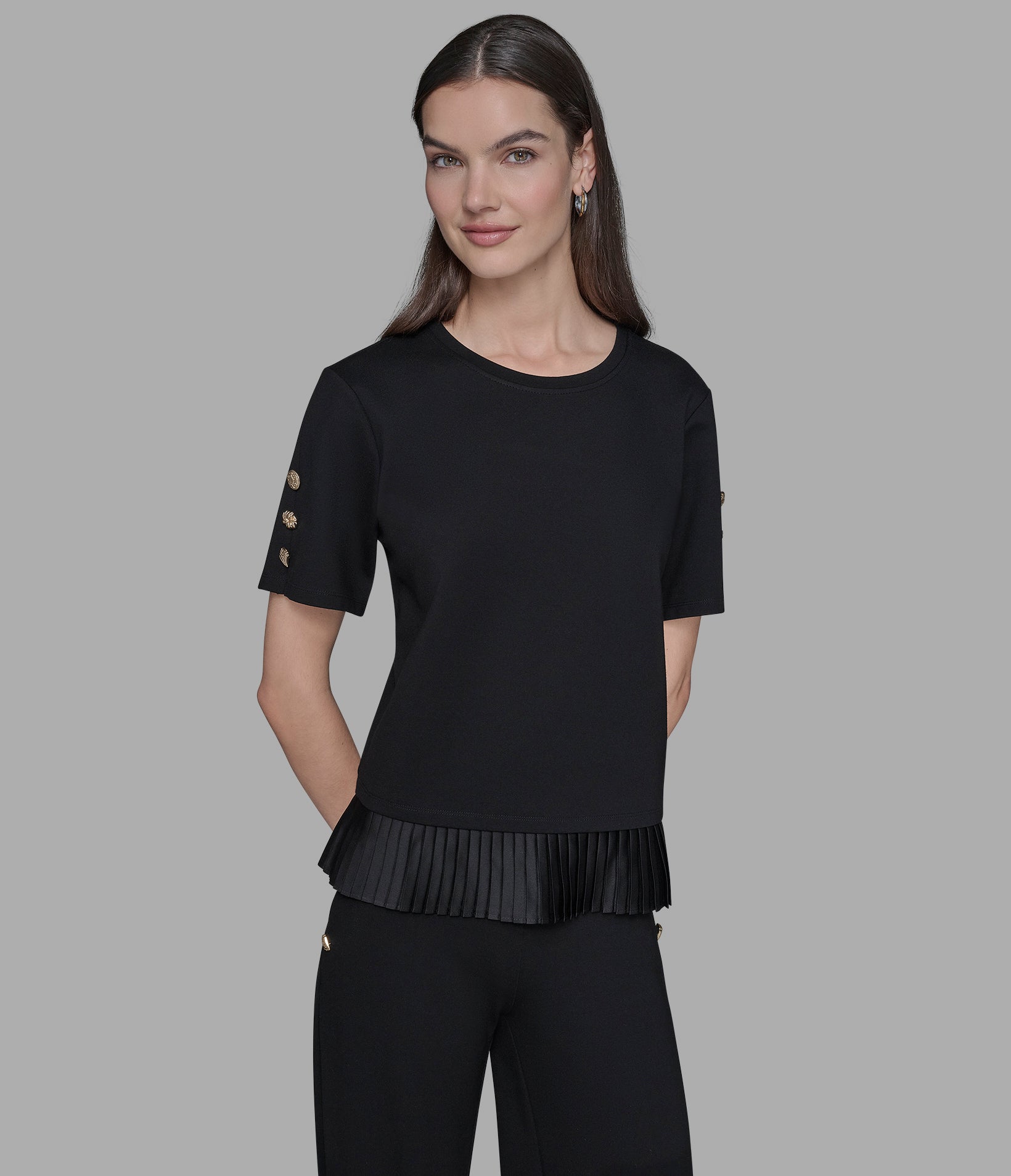 This tee cleans up nicely–paired with trouser-cut denim and boots that belong on a runway.