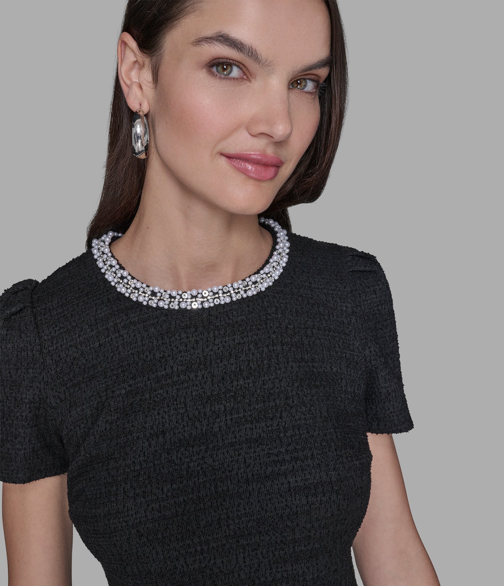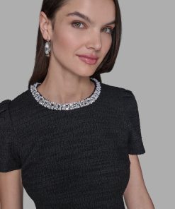 Karl Lagerfeld Women’s Knit Tweed Shift With Pearl Trim | Black