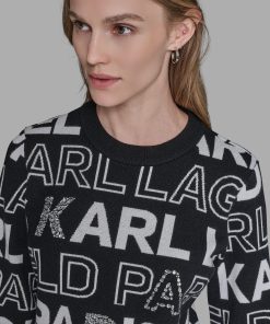 Karl Lagerfeld Women’s Logo Embellished Sweater | Black