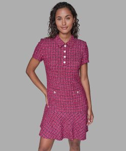 When this tweed dress shows up with herringbone slingback pumps, chic leads the conversation.