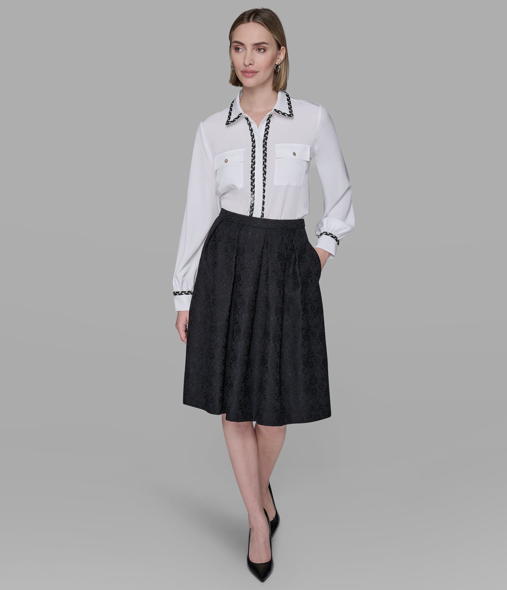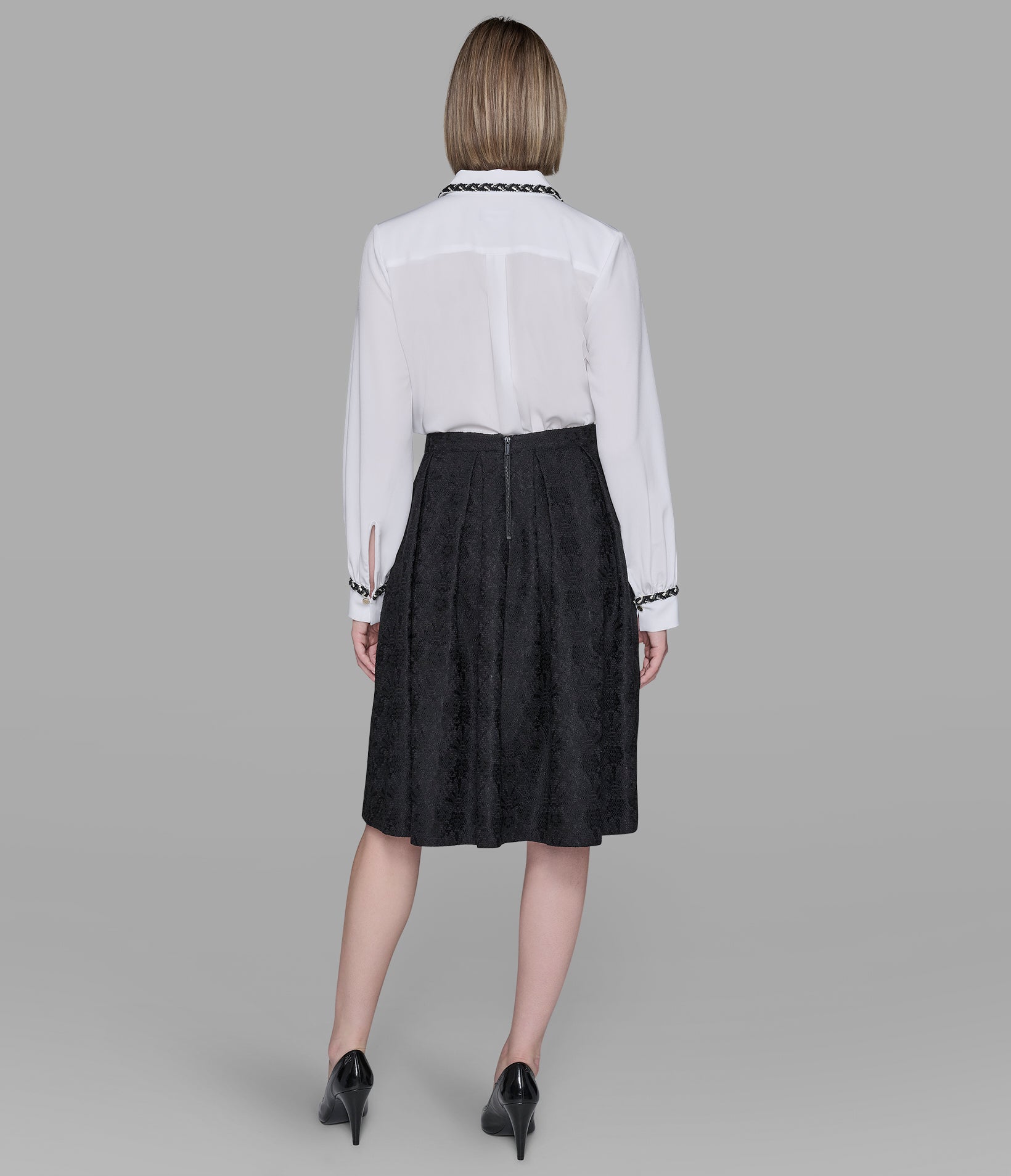 Style this pleated midi with a bow sweater and voilà–parfait pair.