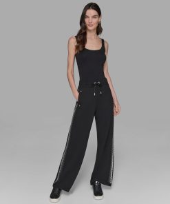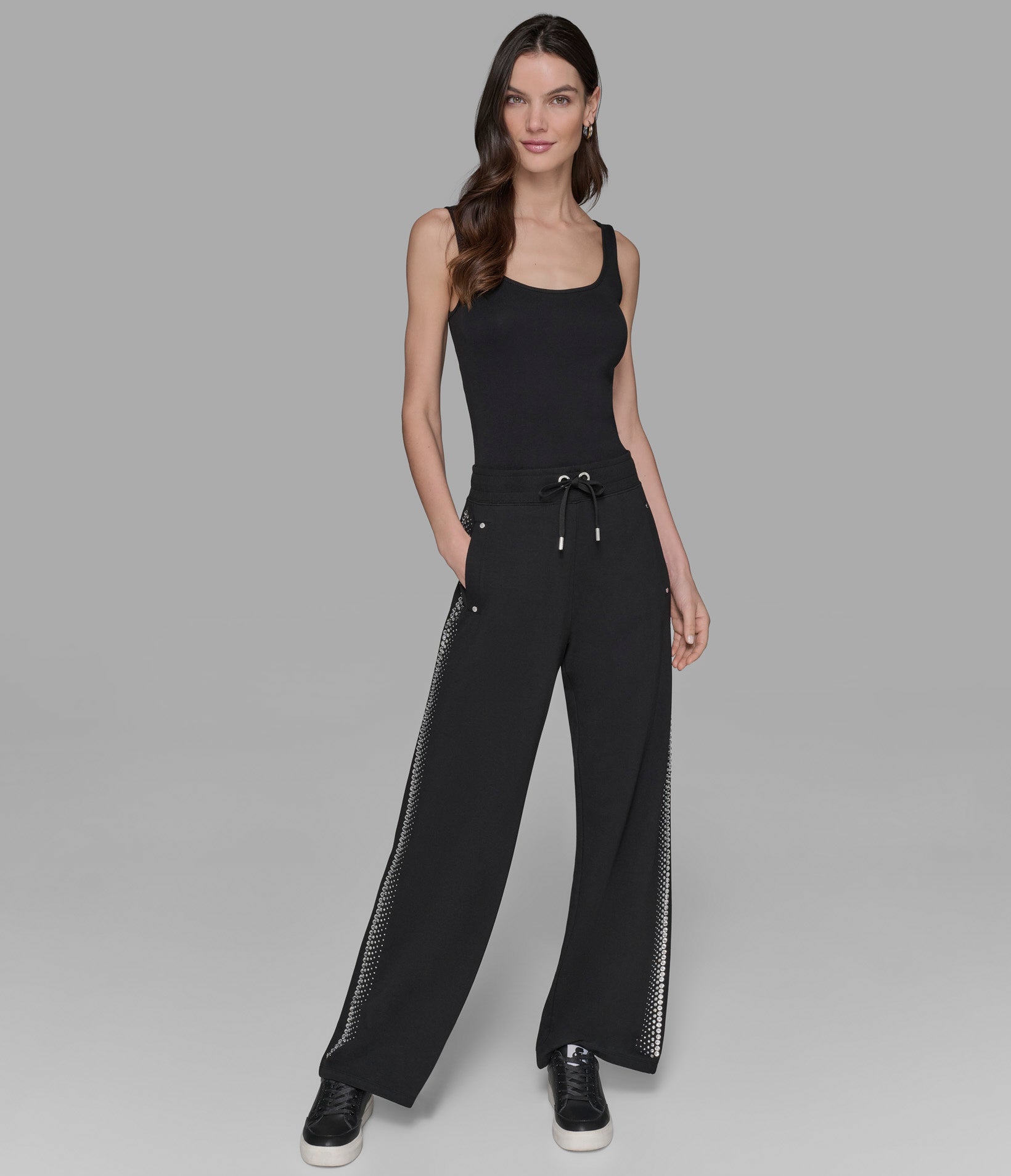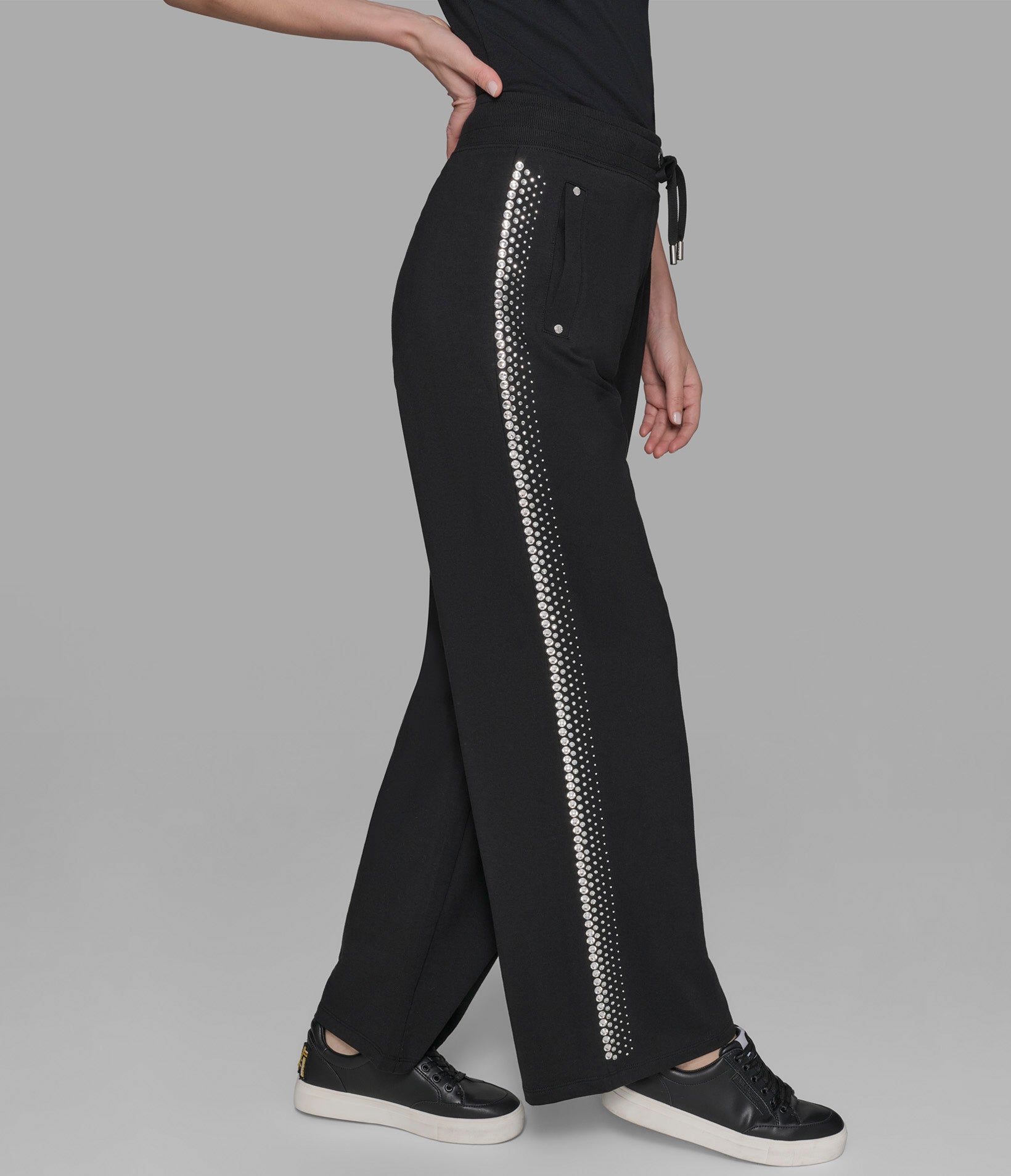 Karl Lagerfeld Women’s Rhinestone Trim Track Pant | Black