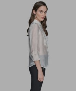 Karl Lagerfeld Women’s Ruffle Button Down Blouse | White