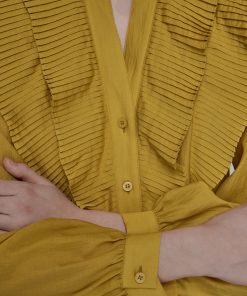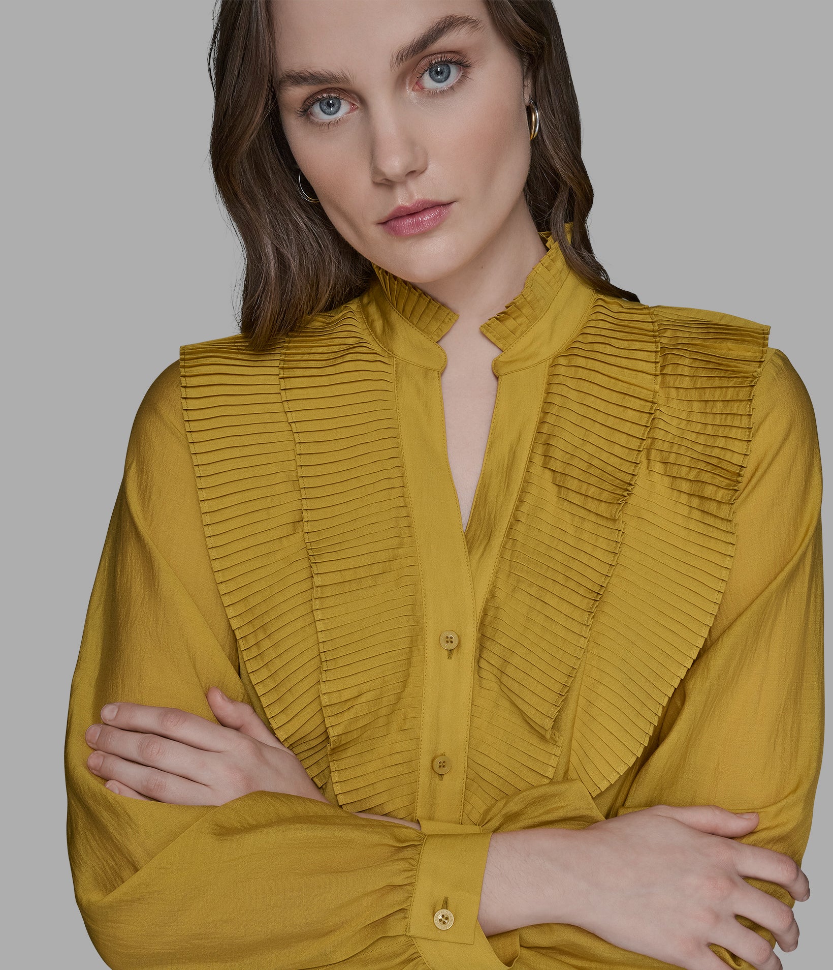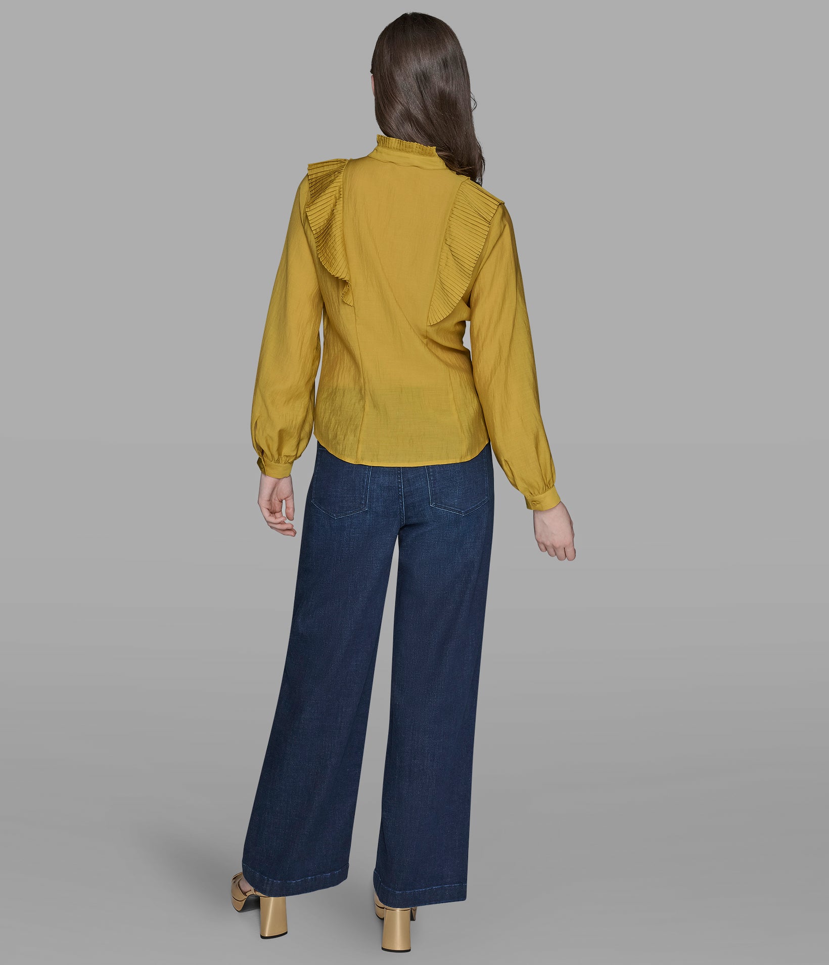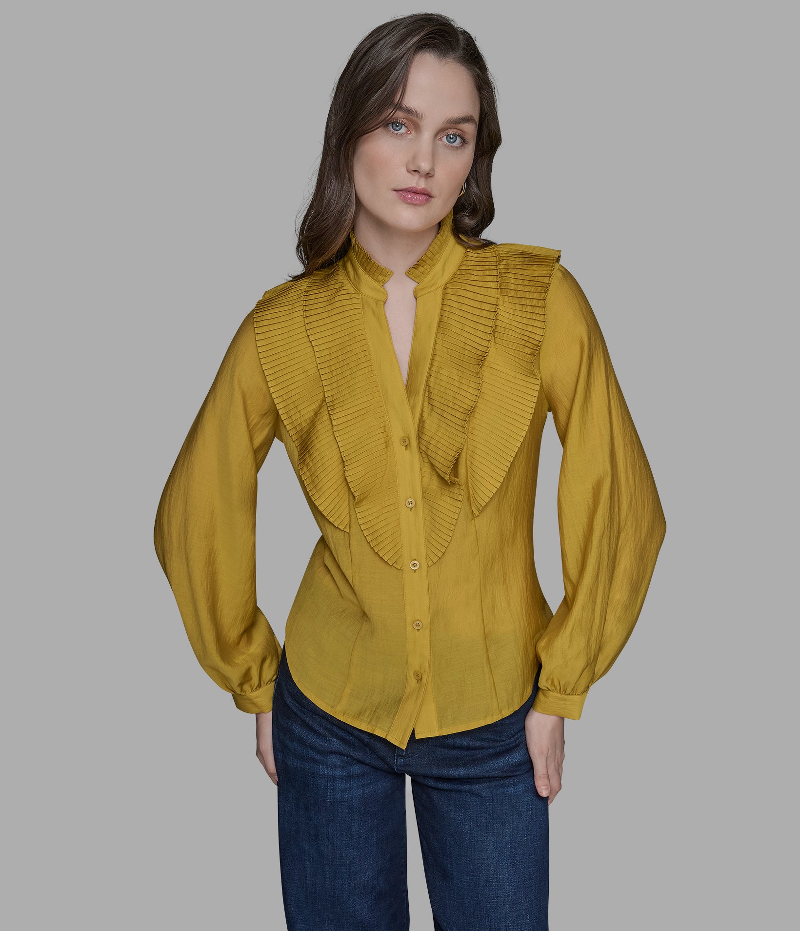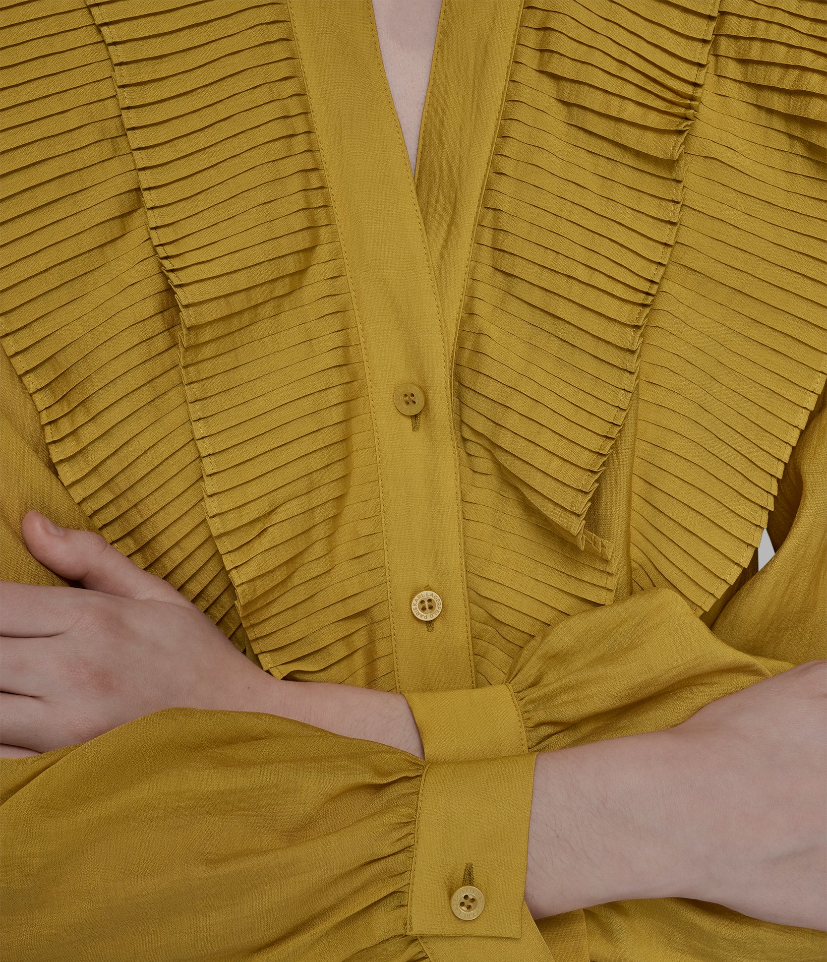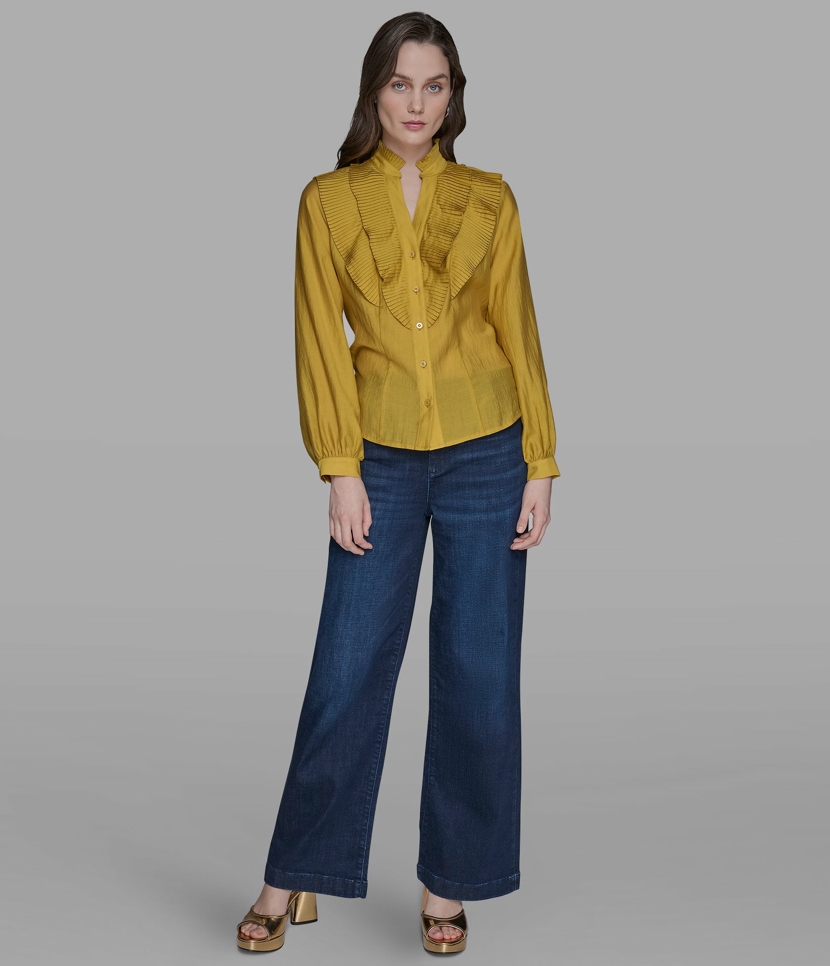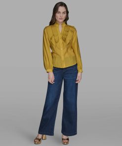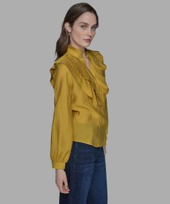 Karl Lagerfeld Women’s Ruffle Collar Button | Gold Flake