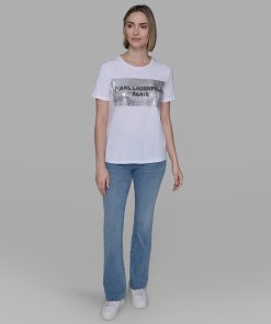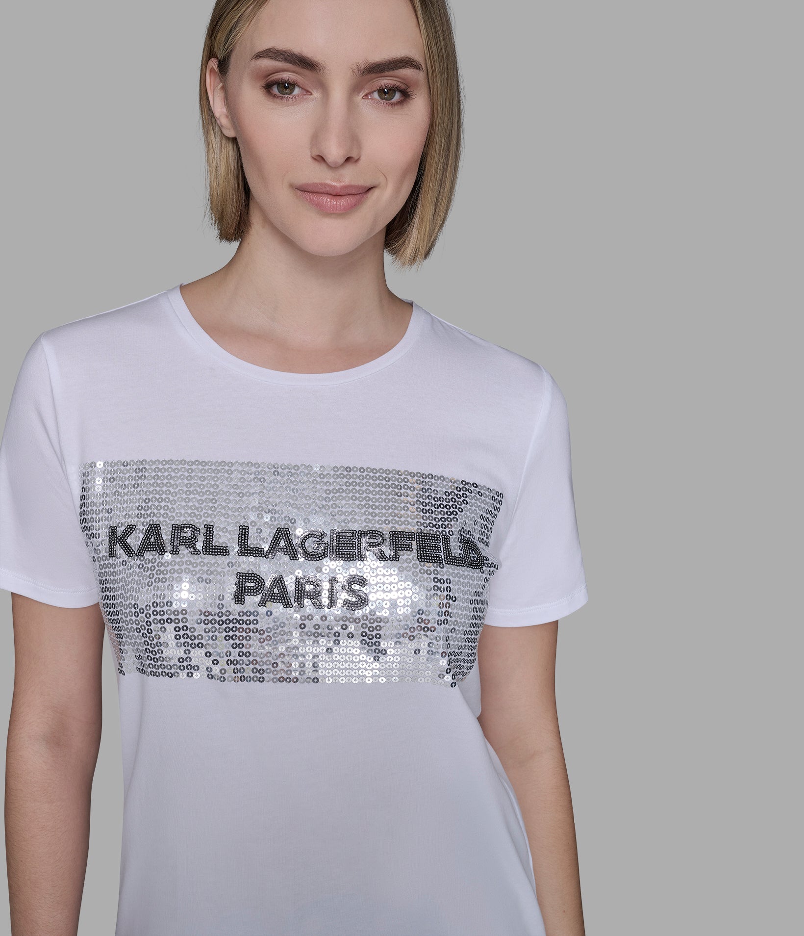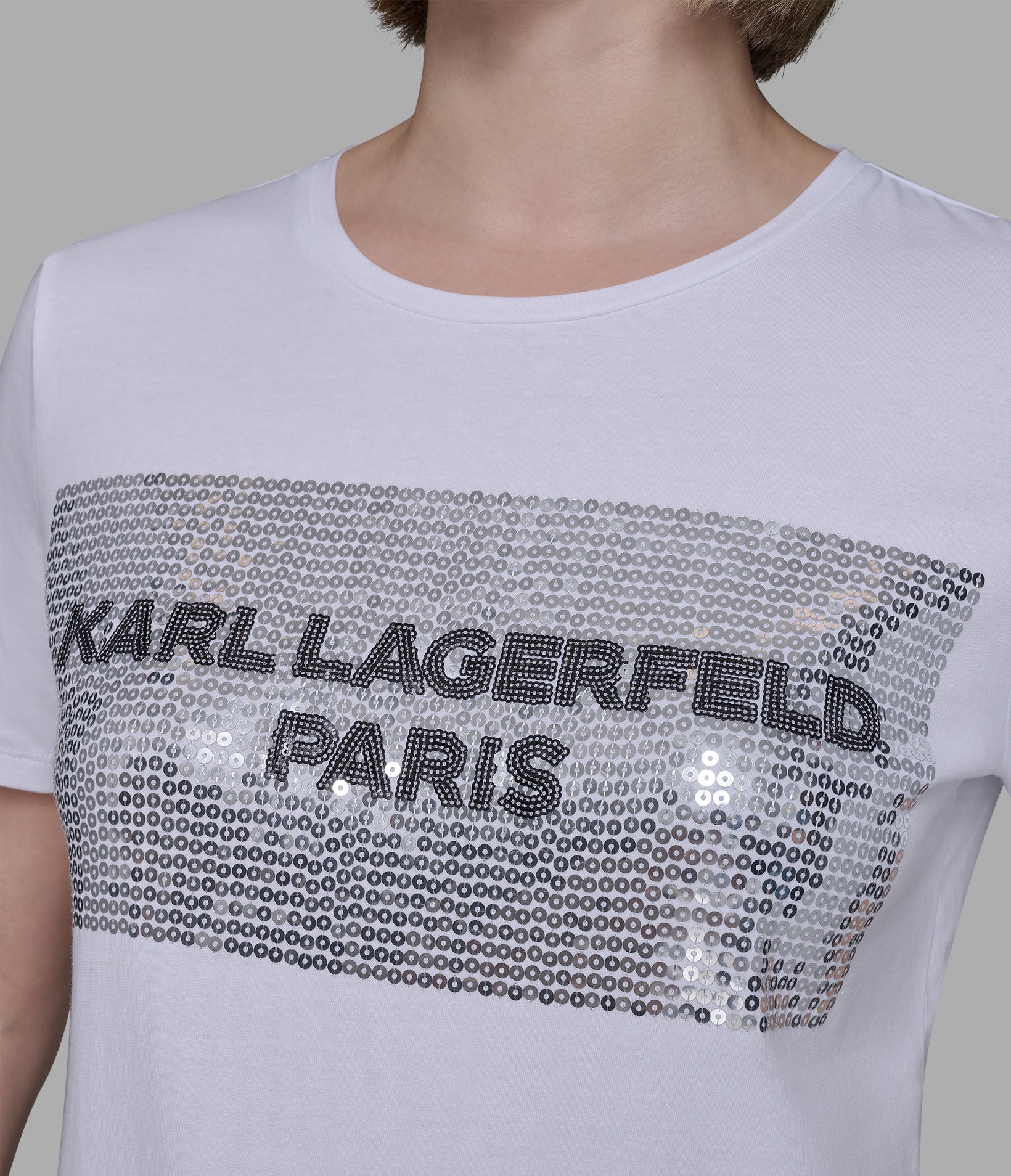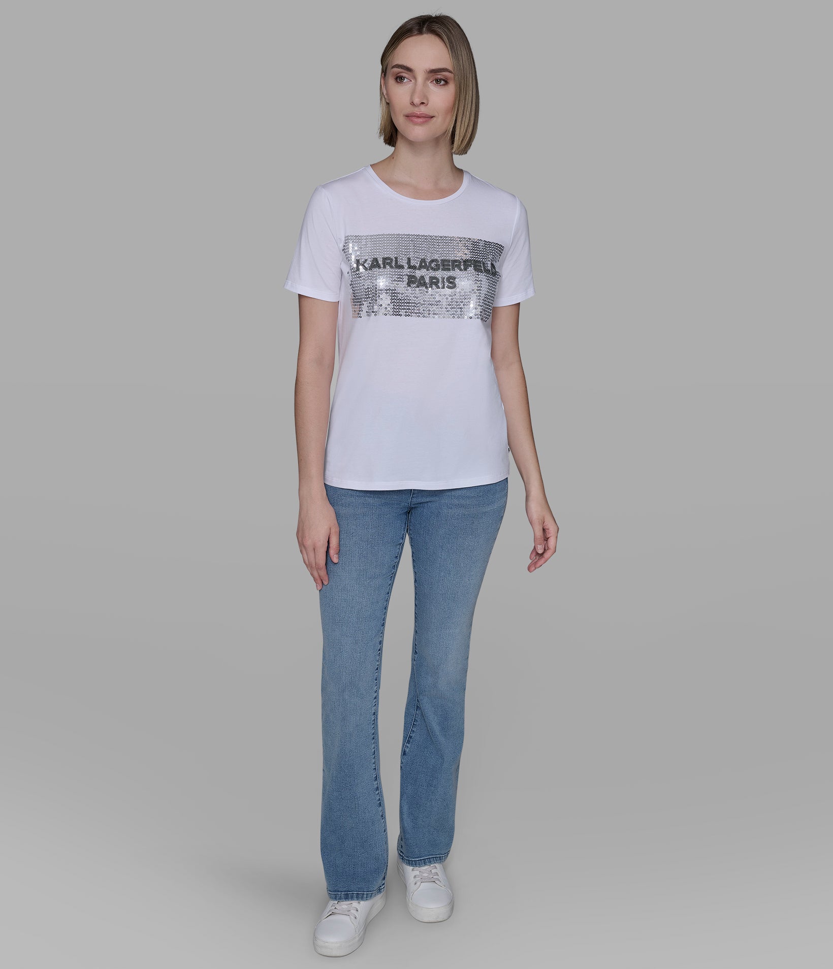 Karl Lagerfeld Women’s Sequin Box Logo Tee | White