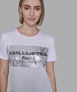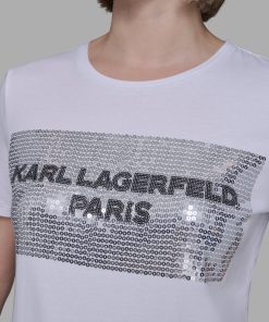 Be the first to review “Karl Lagerfeld Women’s Sequin Box Logo Tee | White” Cancel reply