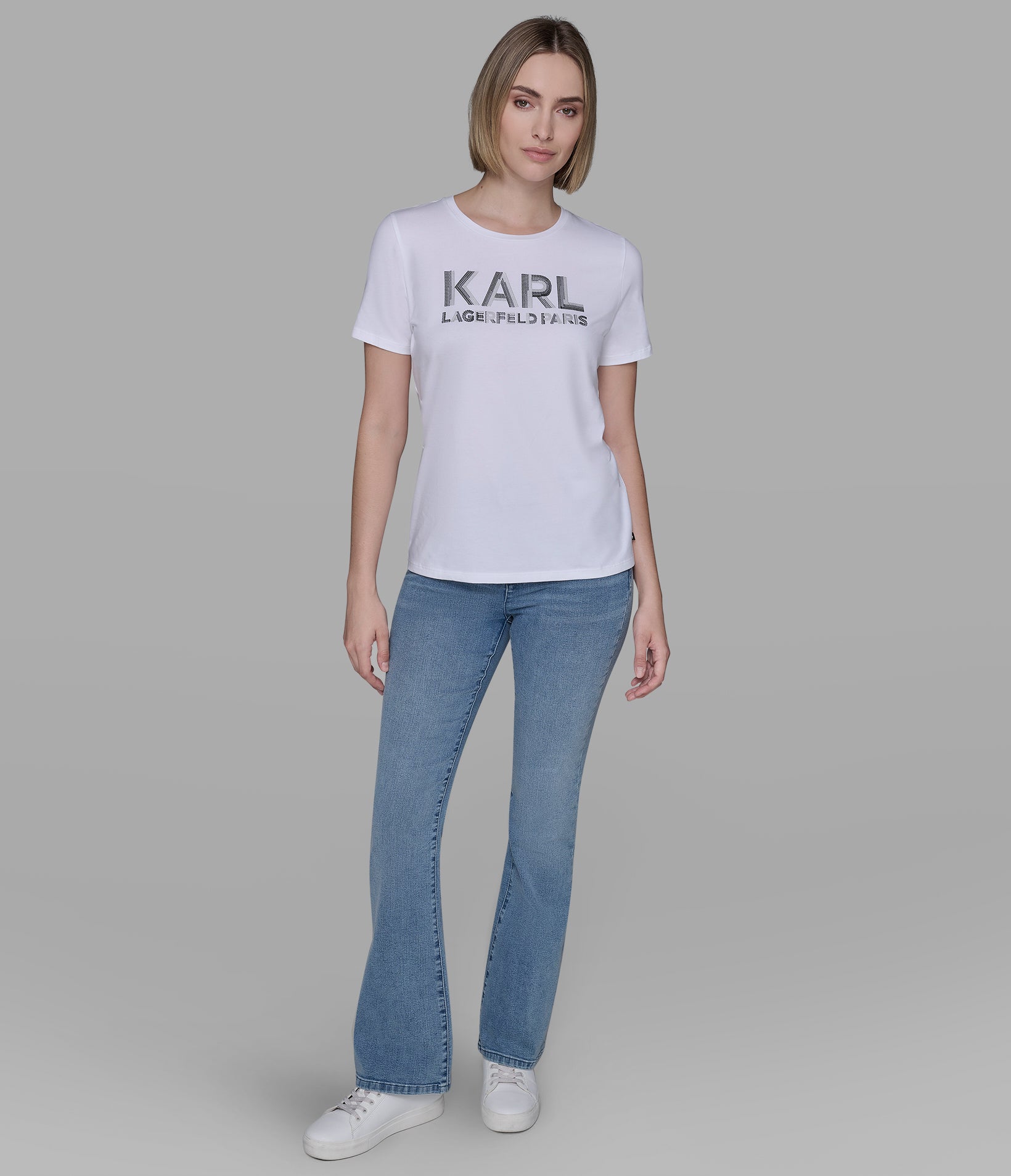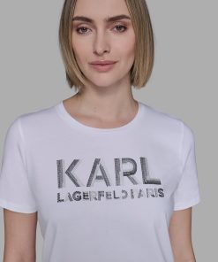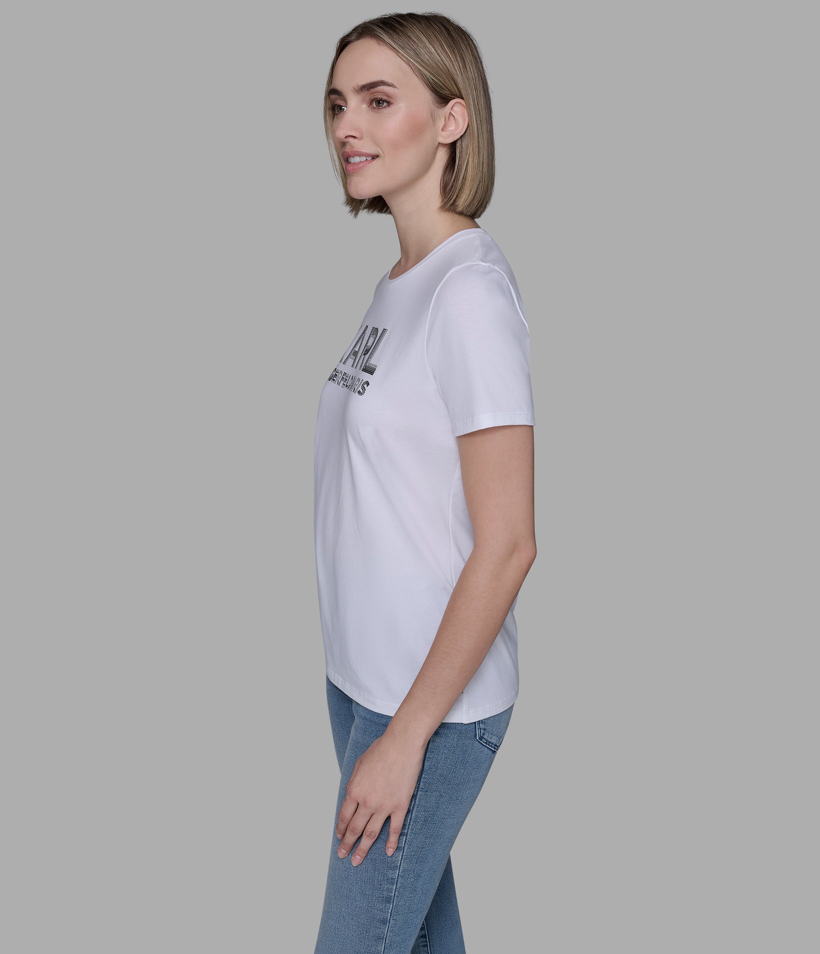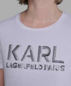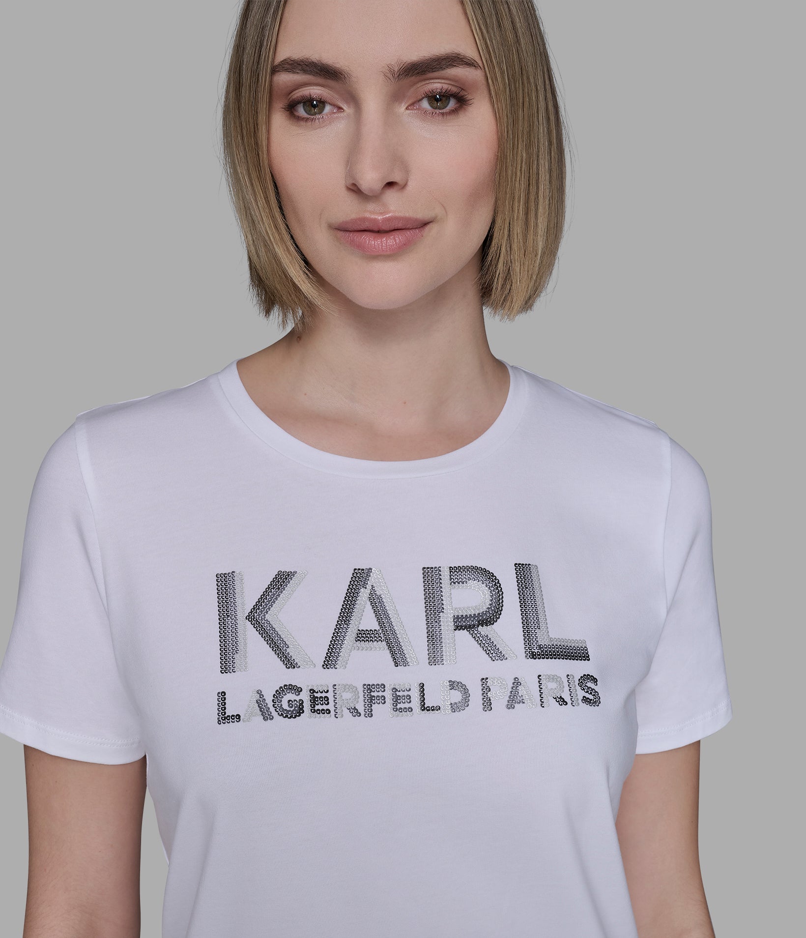 Karl Lagerfeld Women’s Sequin Logo Tee | White