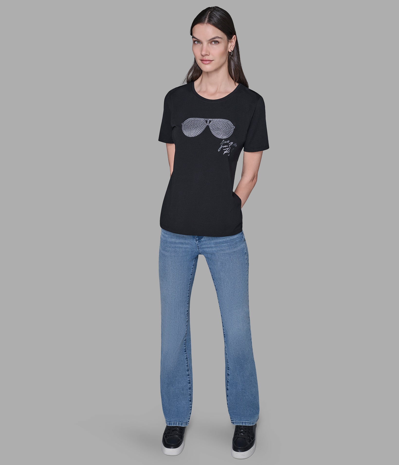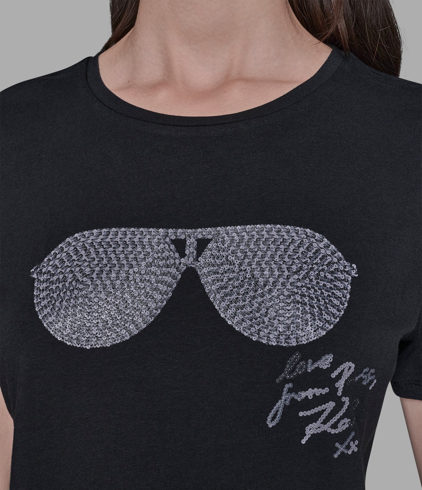 Karl Lagerfeld Women’s Sequin Sunglasses Tee | Black