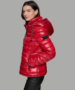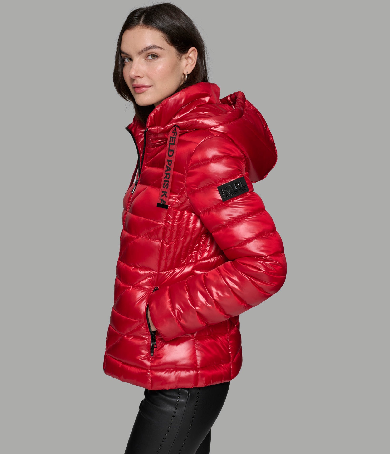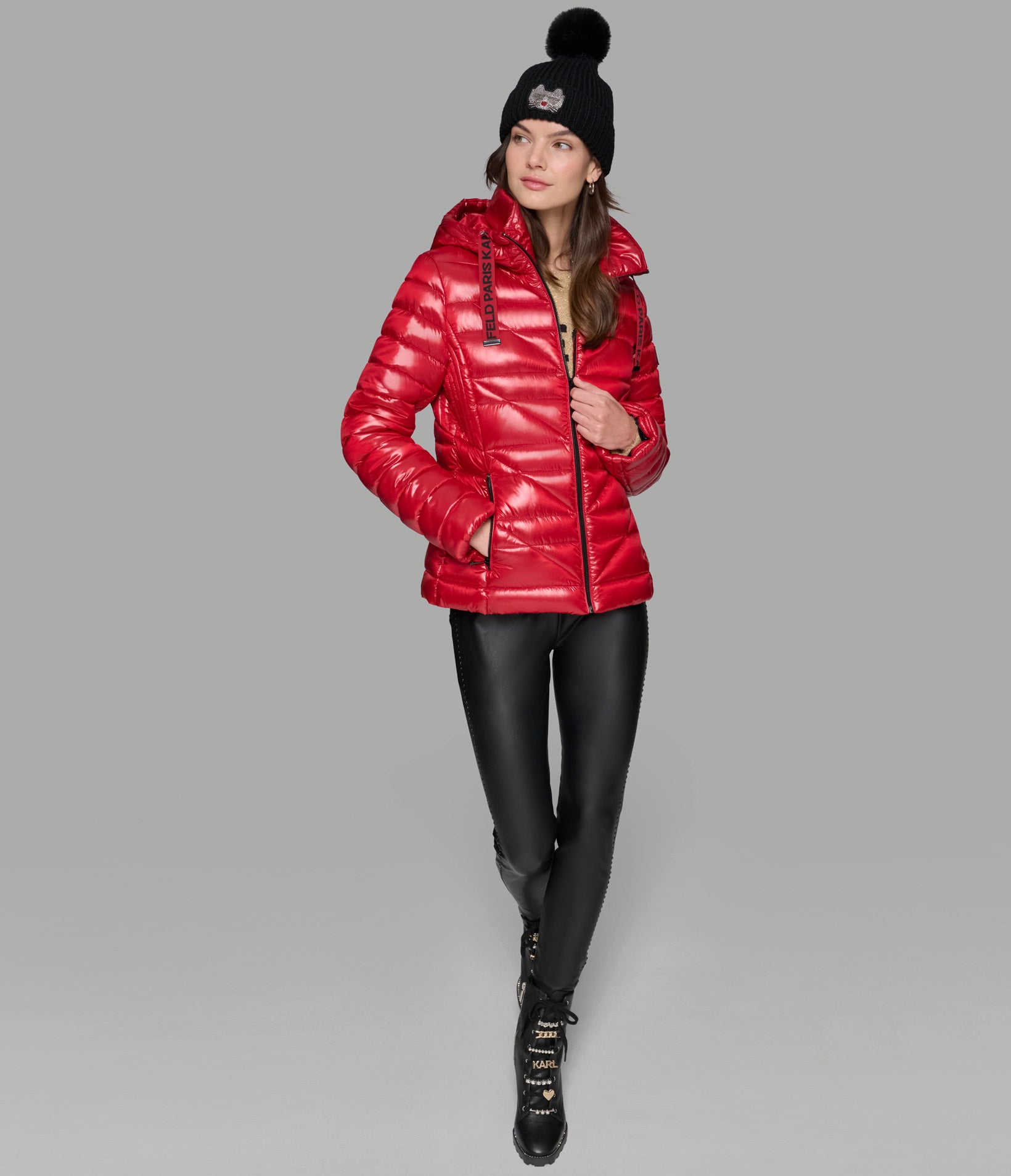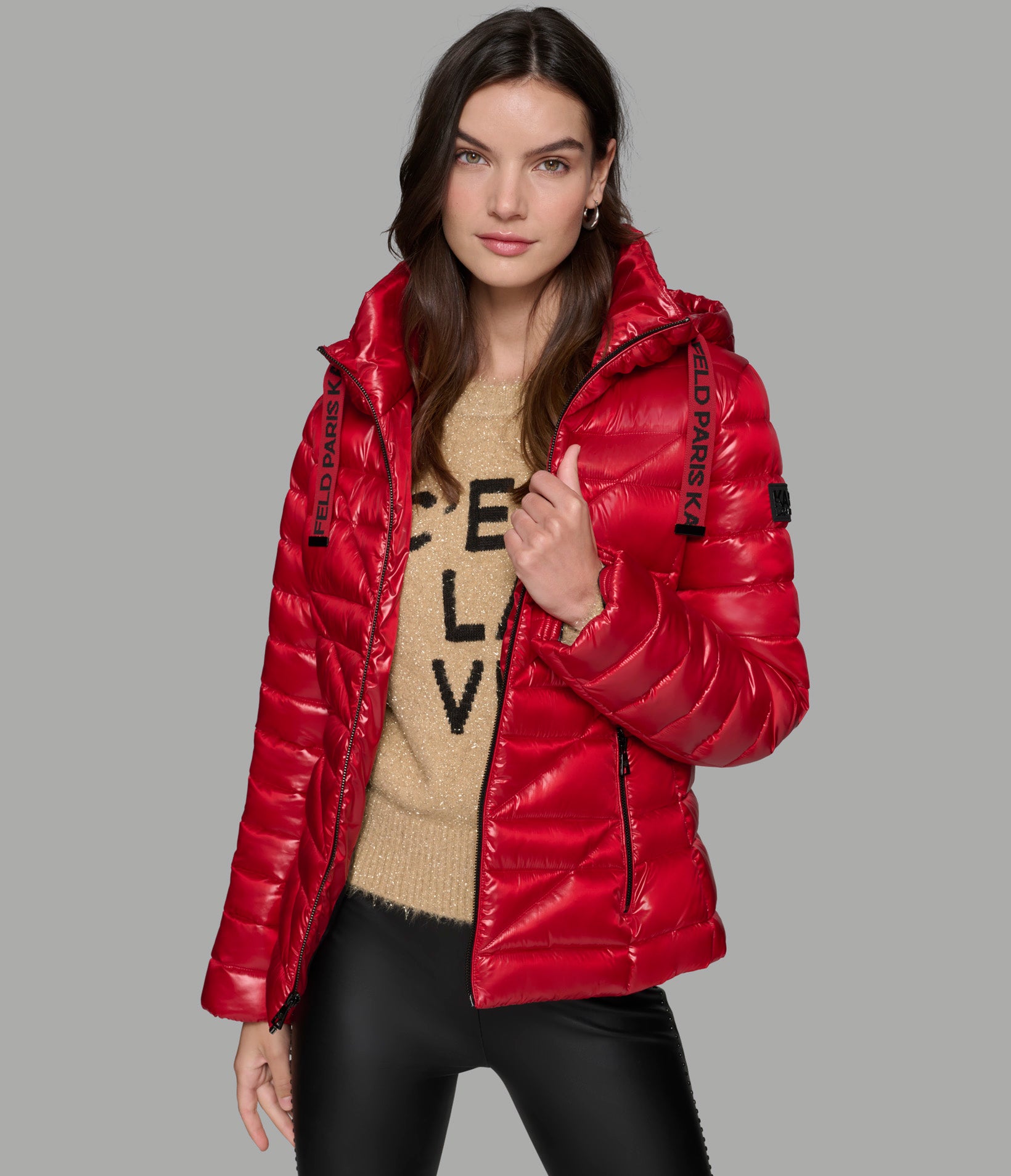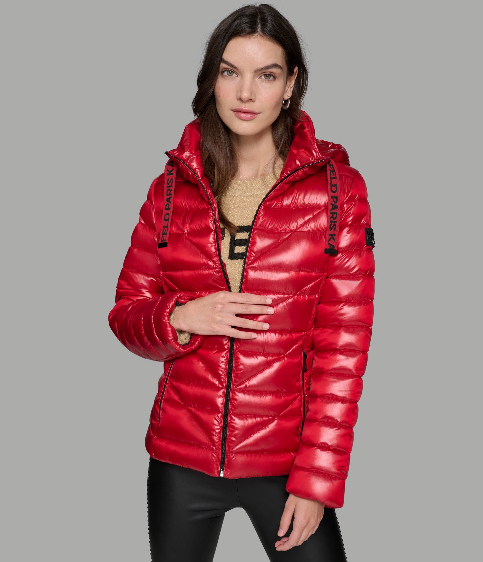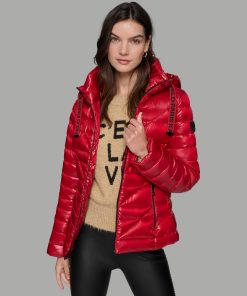 Karl Lagerfeld Women’s Short Puffer Jacket With Logo | Red