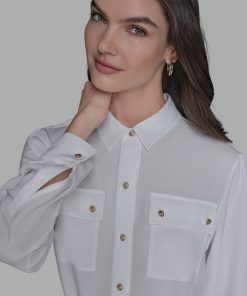 Karl Lagerfeld Women’s Soft Blouse With Chain Belt | White