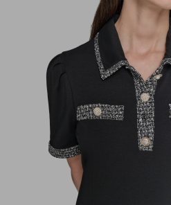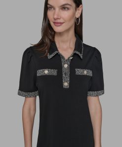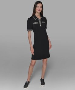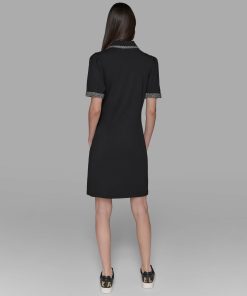 Karl Lagerfeld Women’s Tweed Trim Polo Dress | Black