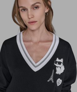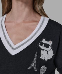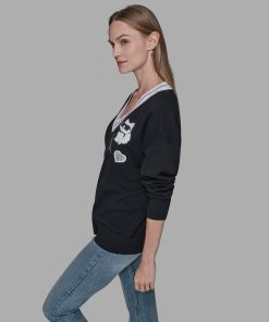Karl Lagerfeld Women’s Varsity Sweater With Patches | Black