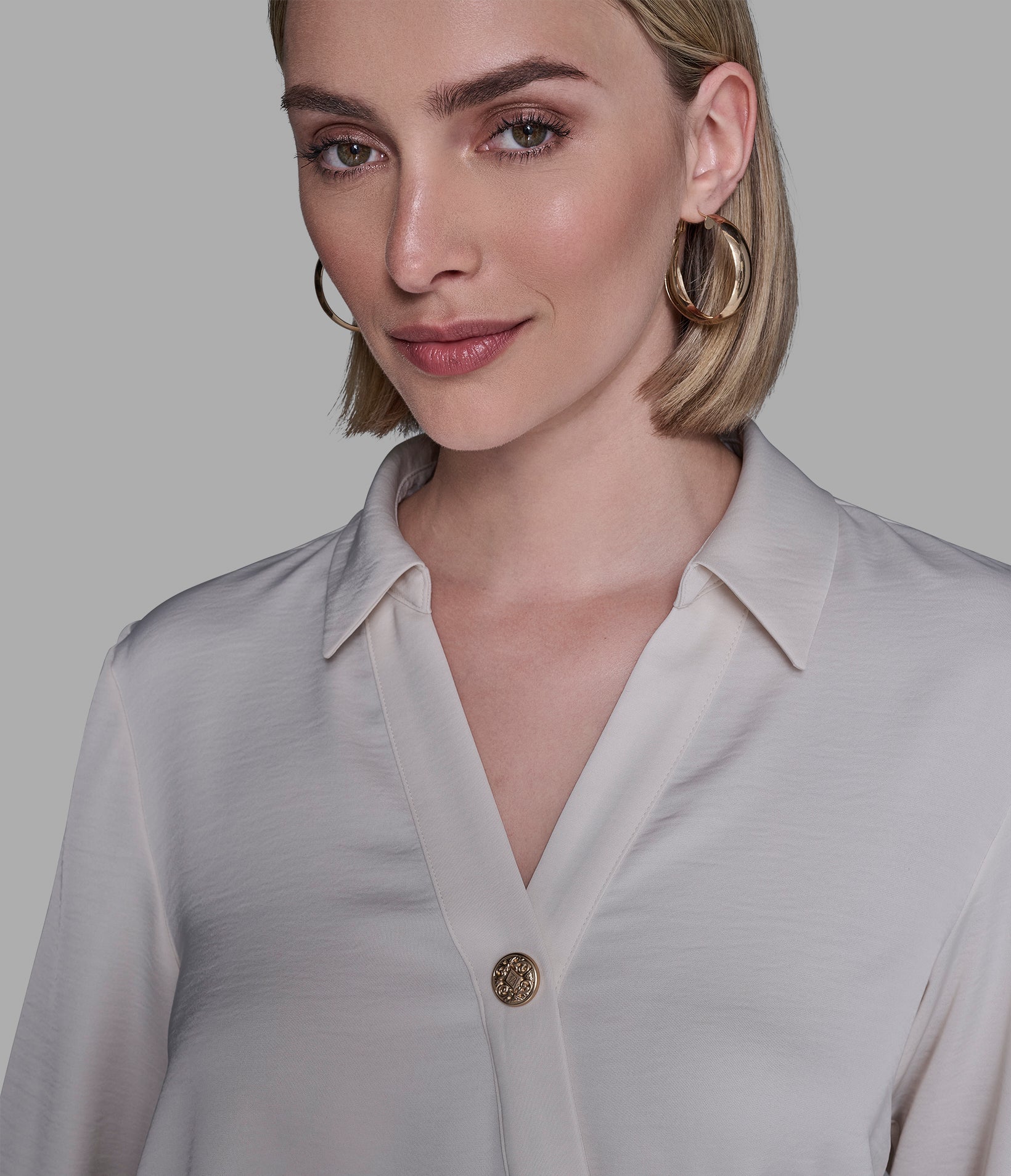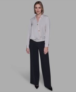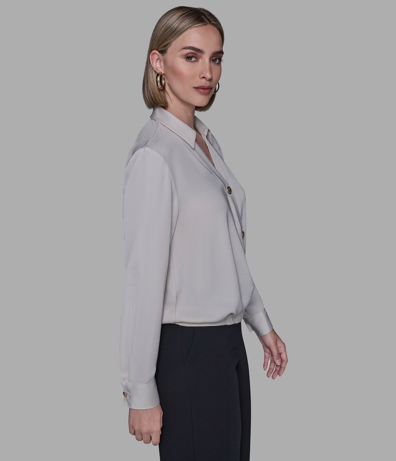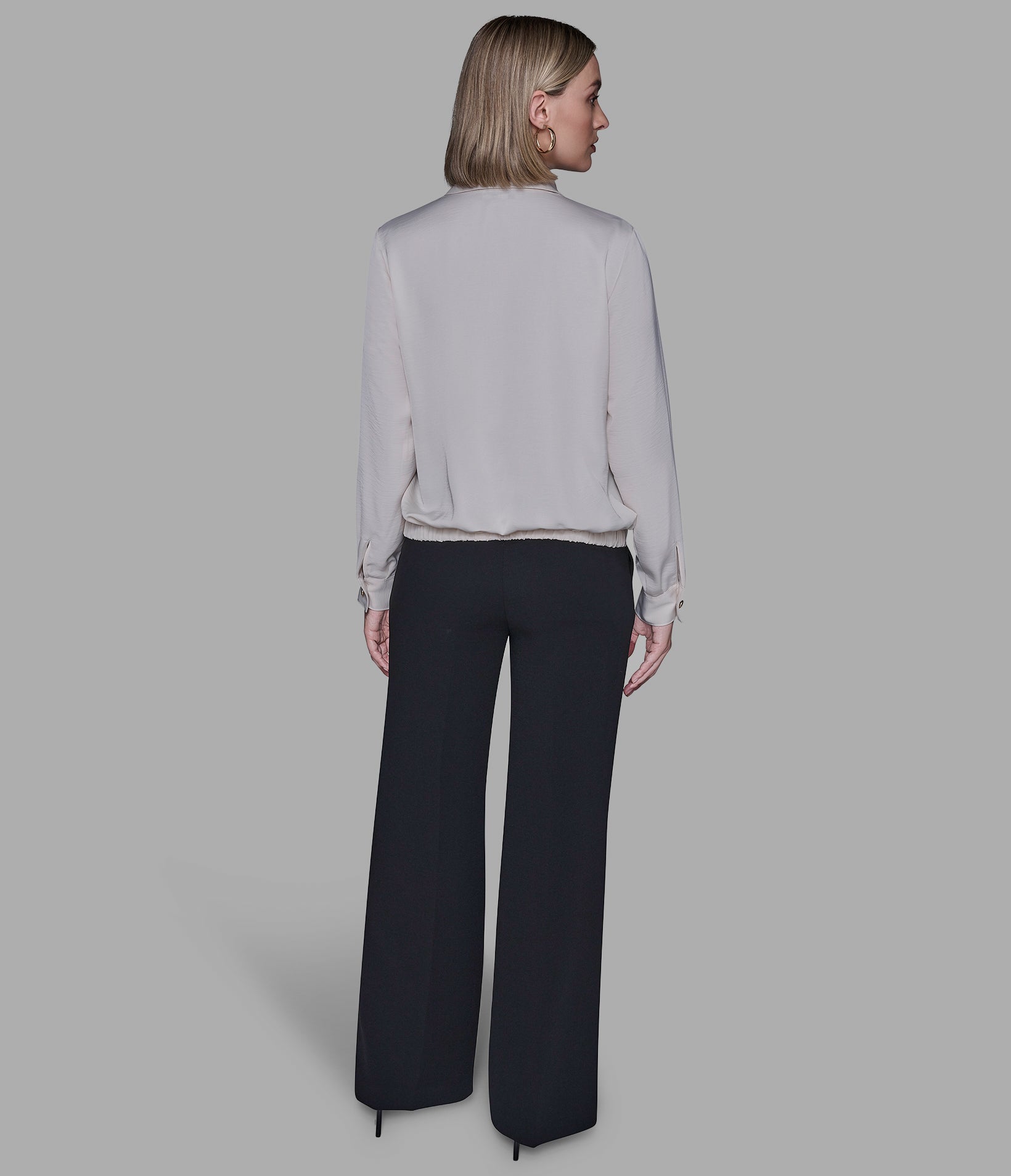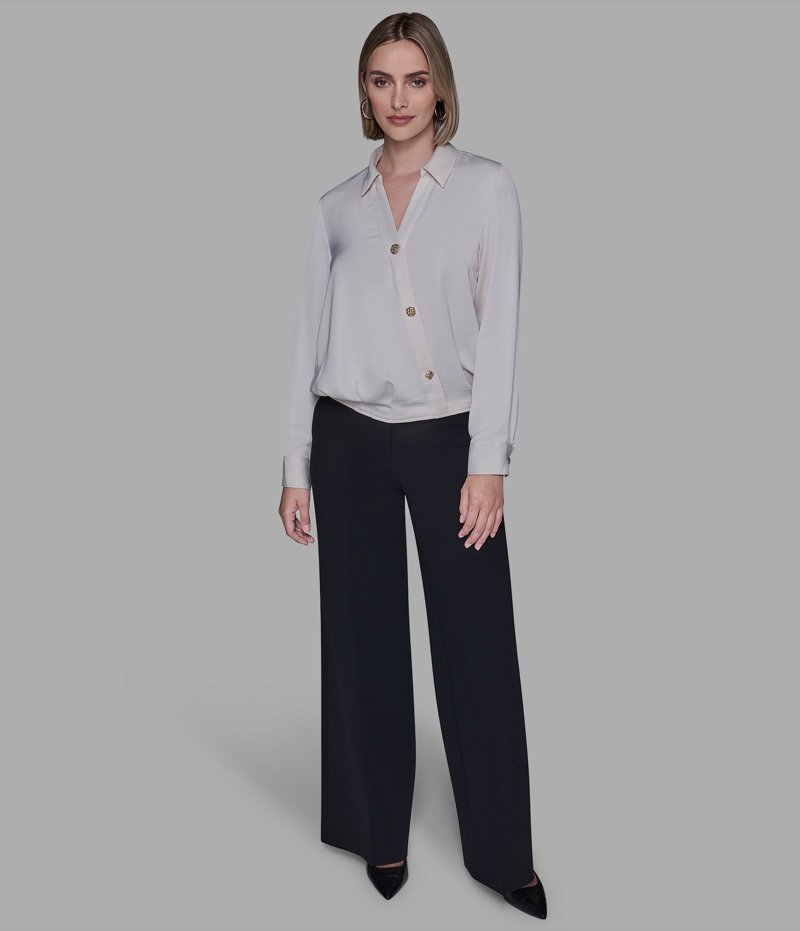 Designed for drama, this blouse plays well with tailored pants and spotlight-stealing heels.